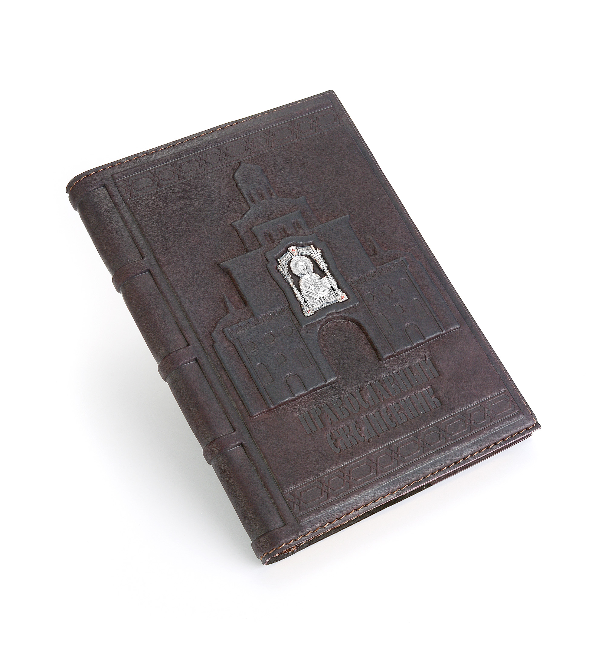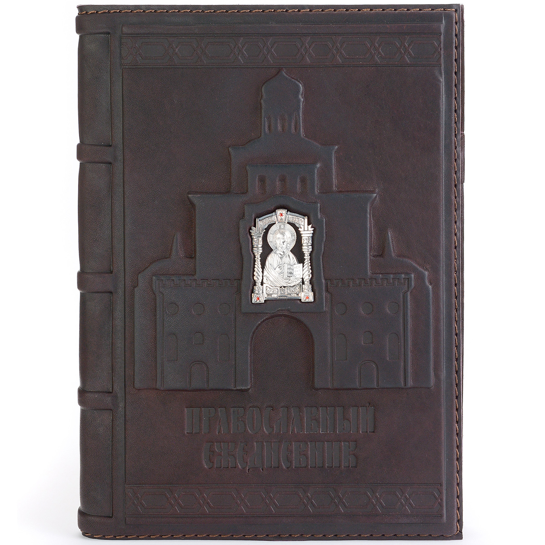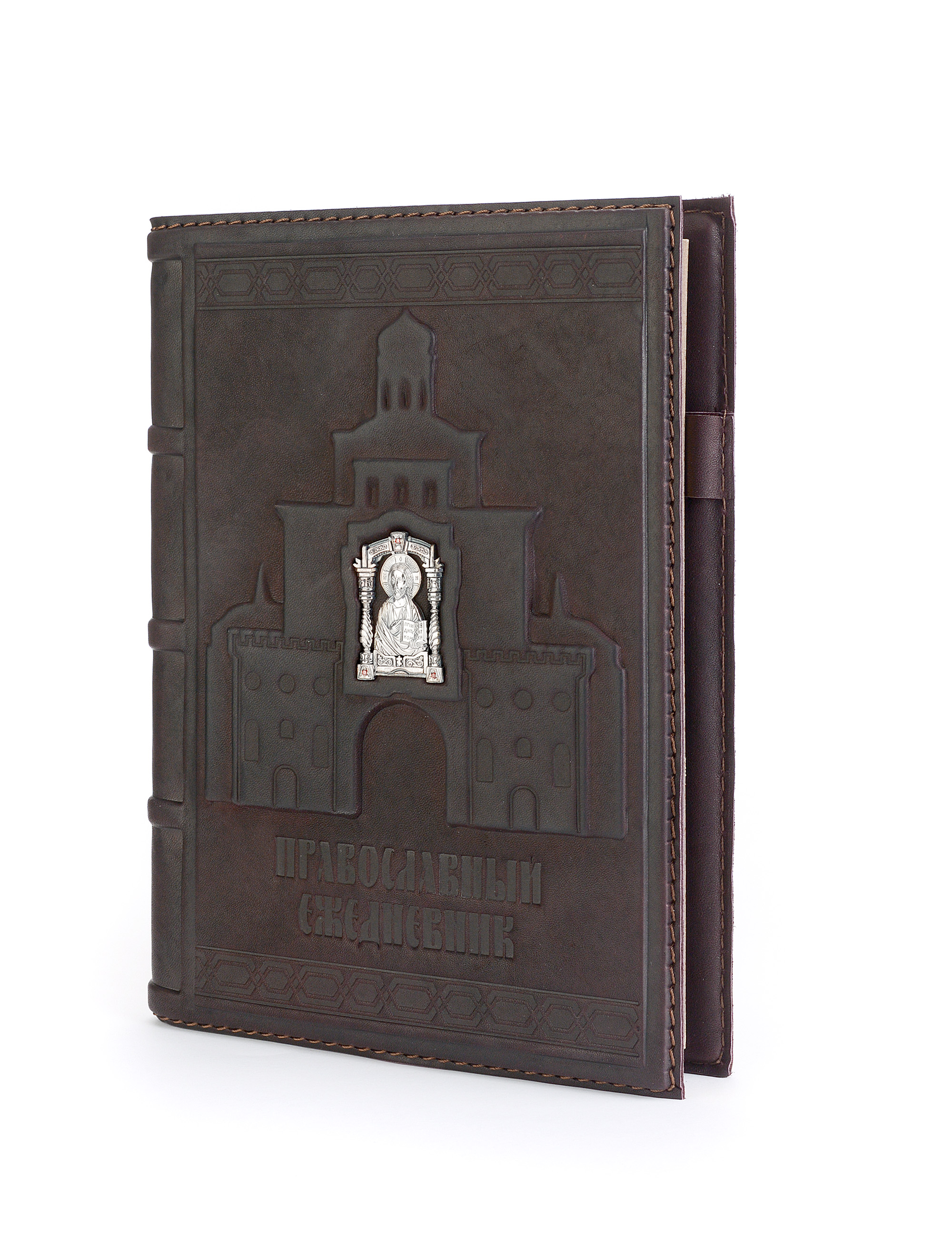 Design features: the binding is handmade from calfskin and decorated with a silver icon of St. Nicholas the Wonderworker. The block is decorated with a three-sided gold edging. The stamps of the workshop and assay chamber are located on the central element of the composition of the diary.