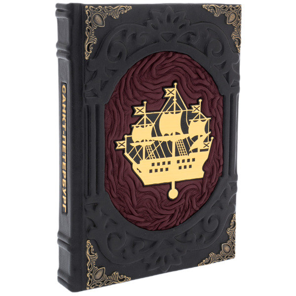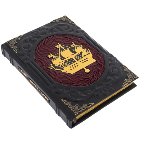 Leather-bound diary "Saint Petersburg. Admiralty" is a tribute to the maritime glory of the empire and the architectural elegance of the city, born by the will of Peter. The cover is made of soft genuine leather and features a spectacular oval medallion with a golden bas—relief of a sailboat, a symbol of aspiration, domination and fearless movement forward. A velvety burgundy field with deep pleats creates a contrast to the background and enhances the feeling of depth. Ornate corner elements made of embossed metal give the composition an exquisite finish and echo the details of the facades of buildings along the Neva River. This item is immediately recognized as an object of status and style.