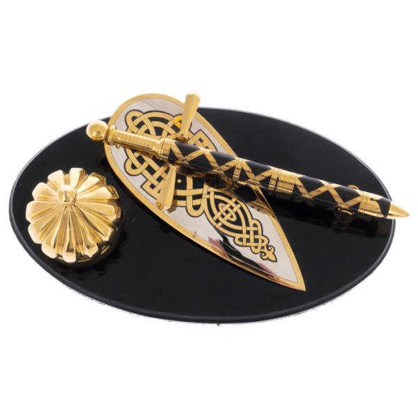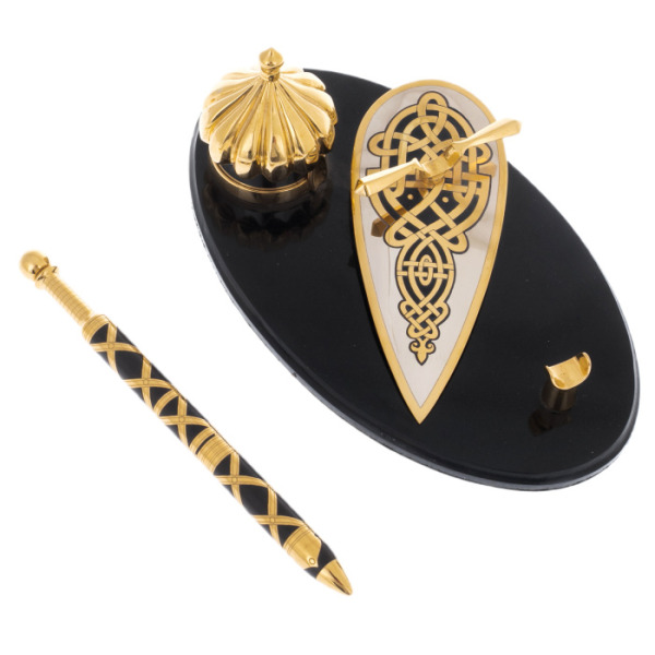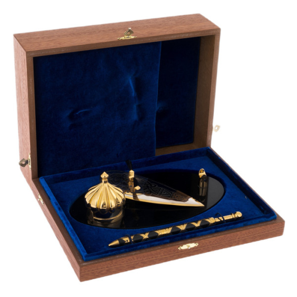 Table set "Leader" with gilding and blackening, ZlatoustTable set "Leader" with gilding and blackening, ZlatoustA table set made of high-quality materials using gilding and blackening techniques will be a wonderful decoration for your desktop. It consists of several items, each of which has its own functionality and style.