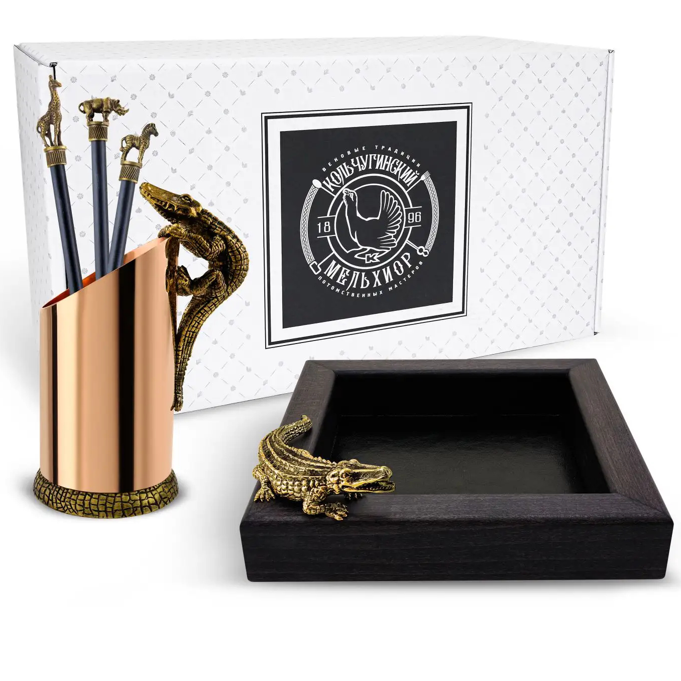 Медный набор канцелярский "Сафари" с чернением, 4 предмета: карандашница, 3 карандаша