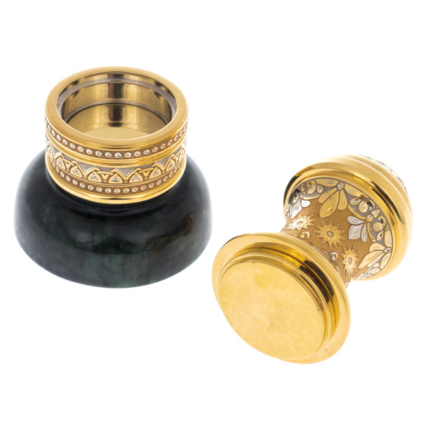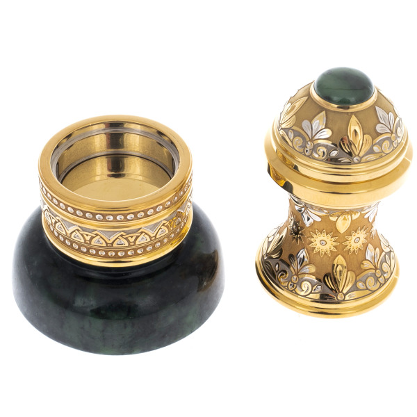 Seal with malachite and cubic zirconia, ZlatoustSeal with malachite and cubic zirconia, ZlatoustExquisite souvenirs have been appreciated at all times, but artistic products made in the style of Zlatoust engraving are admired for the nobility of design and thoughtful functionality. Zlatoust folk craftsmen are known all over the world for their unique metal painting techniques, and the use of a chisel makes the drawing more in-depth and colorful.
