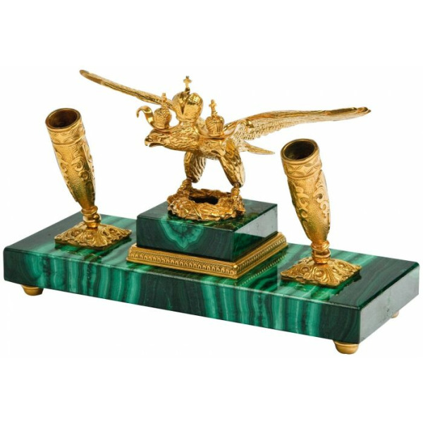 A set of malachite and dolerite "Coat of Arms"A set of malachite and dolerite "Coat of Arms"The products are made of high quality natural materials. The filigree elaboration of details characterizes the impeccable work of the master.