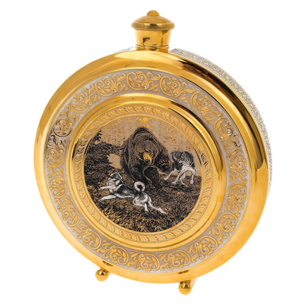 Set of hunting "Bear" ZlatoustSet of hunting "Bear" ZlatoustExclusive hunting kits - there is no better gift for a hunter! Exquisite accessories decorated in the style of Chrysostom can be taken hunting, decorate the study or living room with them. Hunting accessories, covered with silver and gold with picturesque scenes from hunting life, will be useful for cooking around the campfire. The production of hunting and picnic accessories used the highest quality materials - brass, nickel, stainless steel, wood and genuine leather. Hunting kits can be decorated with a gift inscription with the best wishes to the hero of the occasion.