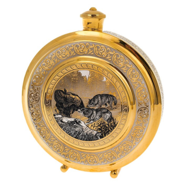 The set of the hunter "Lynx"The set of the hunter "Lynx"Exclusive hunting kits - there is no better gift for a hunter! Exquisite accessories decorated in the style of Chrysostom can be taken hunting, decorate the study or living room with them. Hunting accessories, covered with silver and gold with picturesque scenes from hunting life, will be useful for cooking around the campfire. The production of hunting and picnic accessories used the highest quality materials - brass, nickel, stainless steel, wood and genuine leather. Hunting kits can be decorated with a gift inscription with the best wishes to the hero of the occasion.