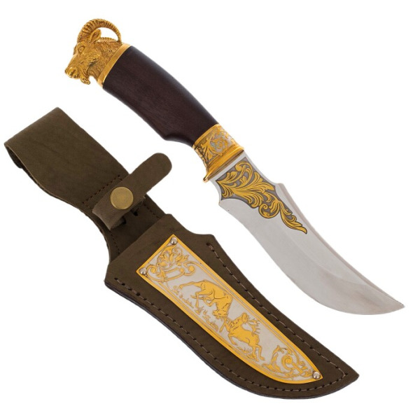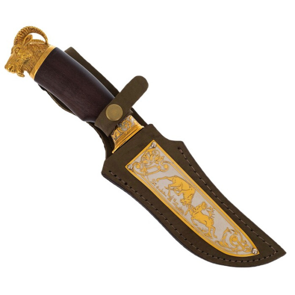 Exclusive hunting kits are made in the technique of Zlatoust, a national art craft. Knives, stacks and hunting accessories, covered with platinum, gold, silver and nickel, are decorated with engravings by Zlatoust masters. After an elegant pattern is applied to the polished surface, the product is dried in an oven and subjected to etching, after which the pattern becomes embossed. The secrets and subtleties of this art are passed down from generation to generation, so unique artistic products are unique. Hunting kits can be decorated with a gift inscription with the best wishes to the hero of the occasion.