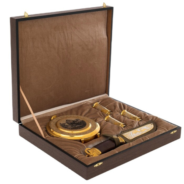 The secrets and subtleties of this art are passed down from generation to generation, so unique artistic products are unique. Hunting kits can be decorated with a gift inscription with the best wishes to the hero of the occasion.