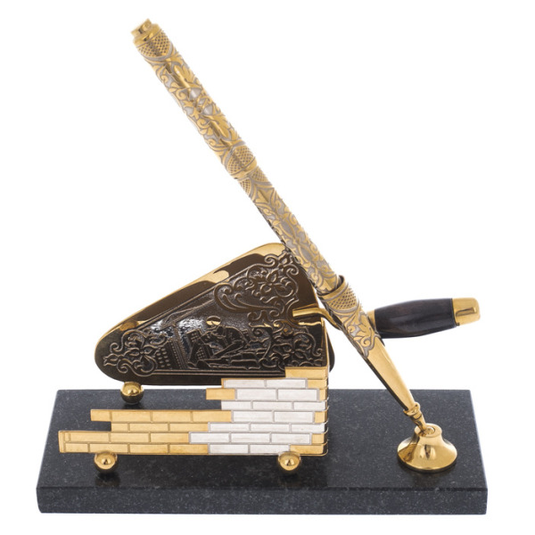 Writing set "Head" on a serpentine stand, ZlatoustWriting set "Head" on a serpentine stand, ZlatoustA symbol of power embodied in gold and stone, this writing set is not just an accessory, but a statement of status. The serpentine, hidden in the bowels of the earth, has long been considered a stone of rulers, possessing the power to protect, inspire and give clarity to thoughts. Its deep, rich hue creates a contrast with the shining gilding that plays on the surface of objects, like the reflections of the sun on the armor of a great commander.