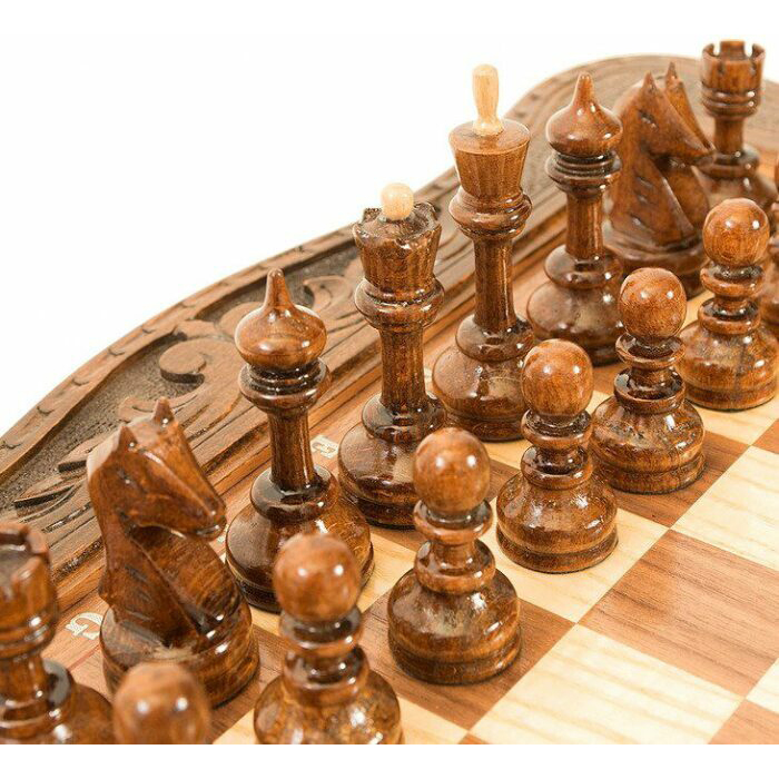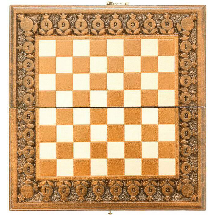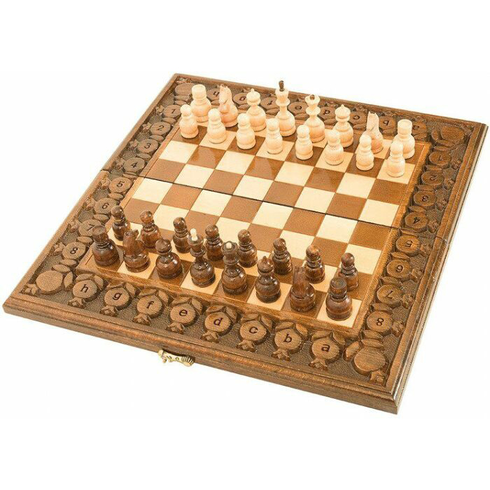 Carved "Grenadine" small game set (chess, backgammon and checkers)