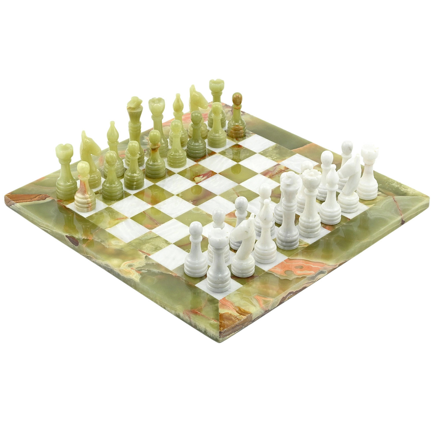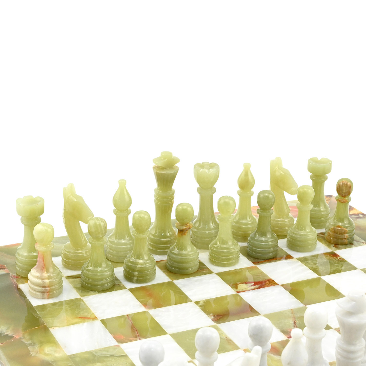 Chess set made of green onyx and white marble "Premium"370*370mm