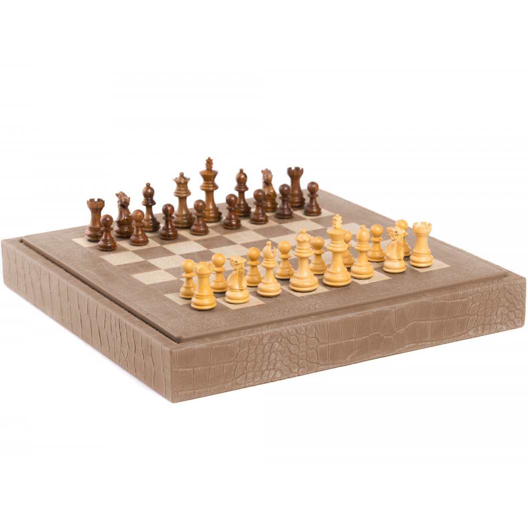Package contents:game board, 32 chess pieces made of boxwood and rosewood (natural or lacquered finish).