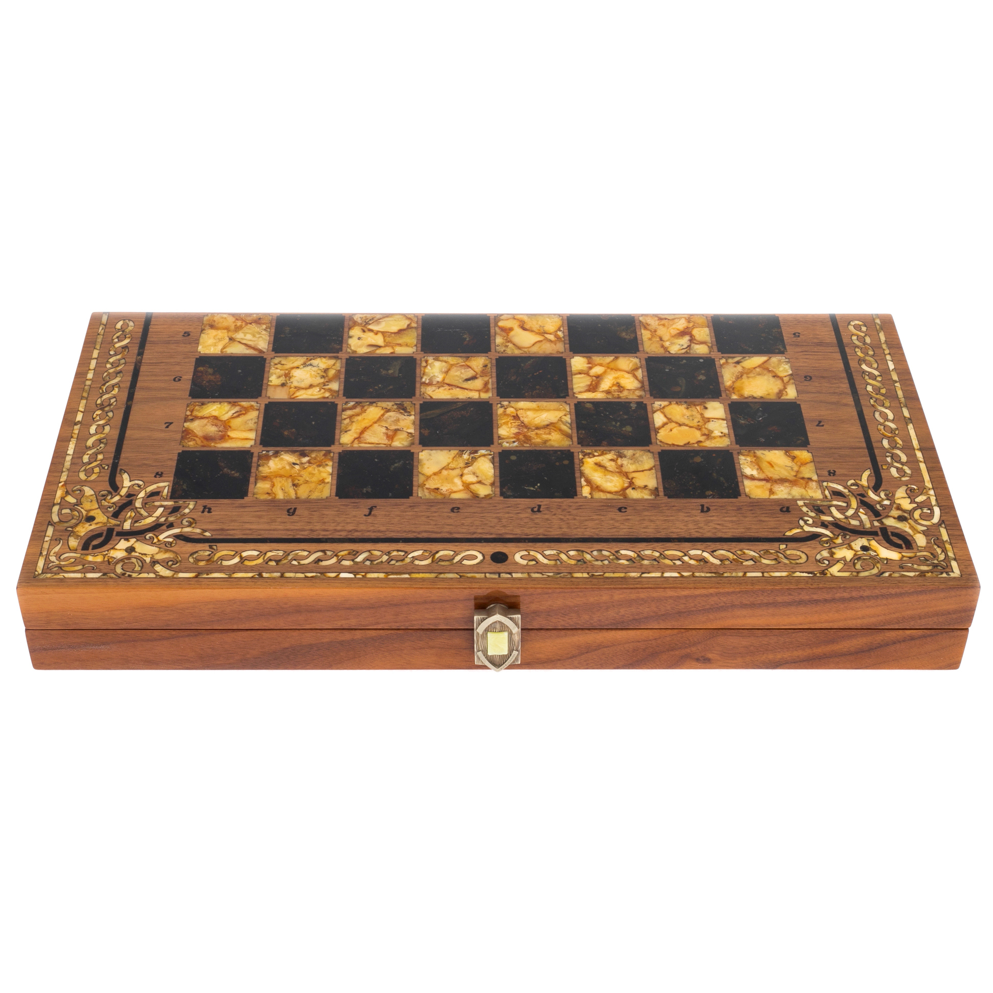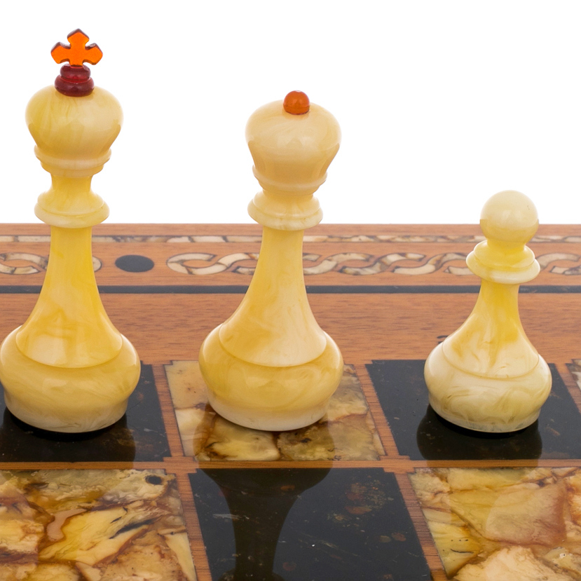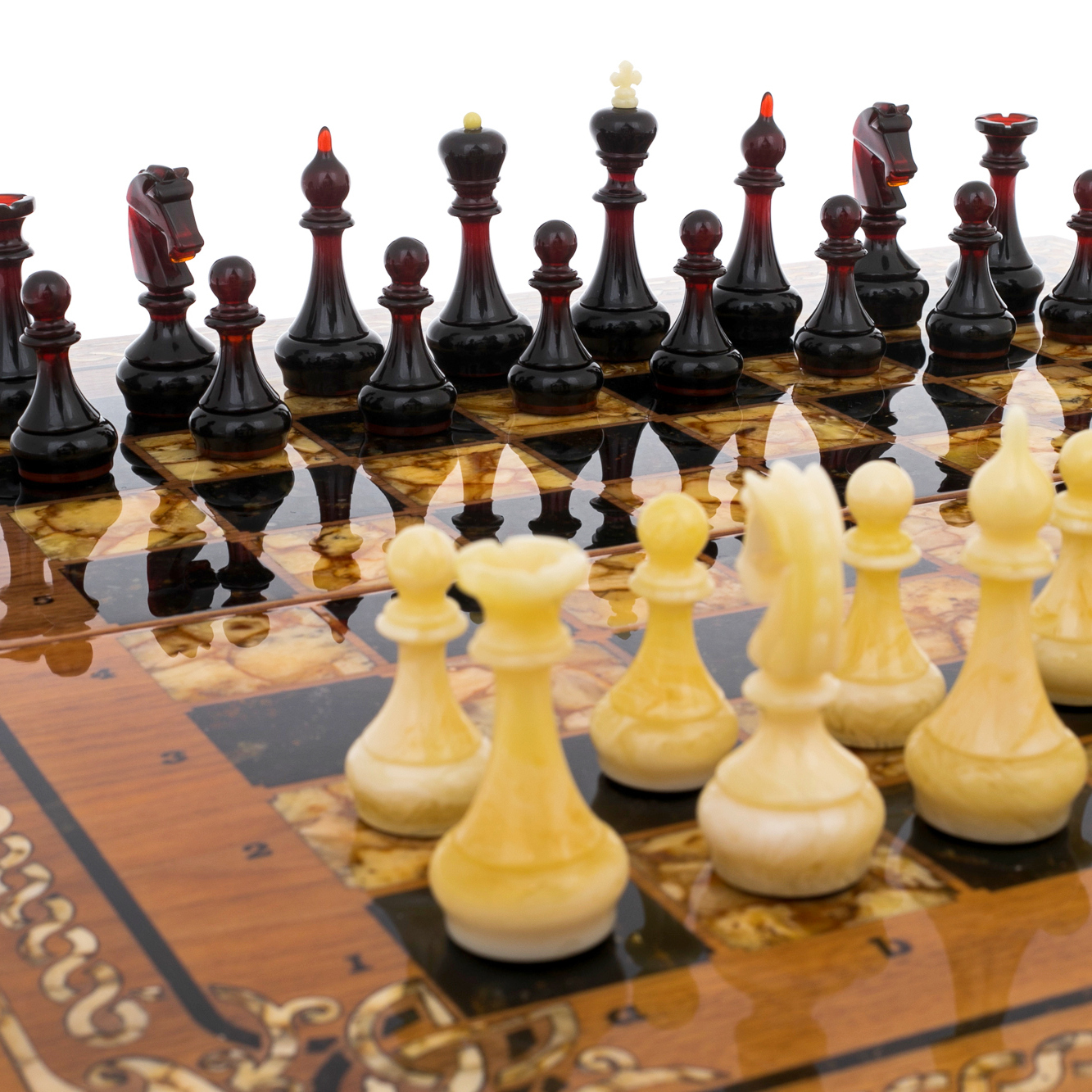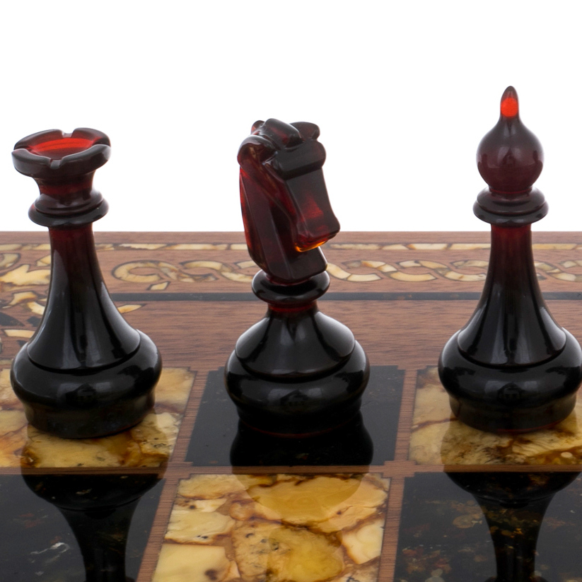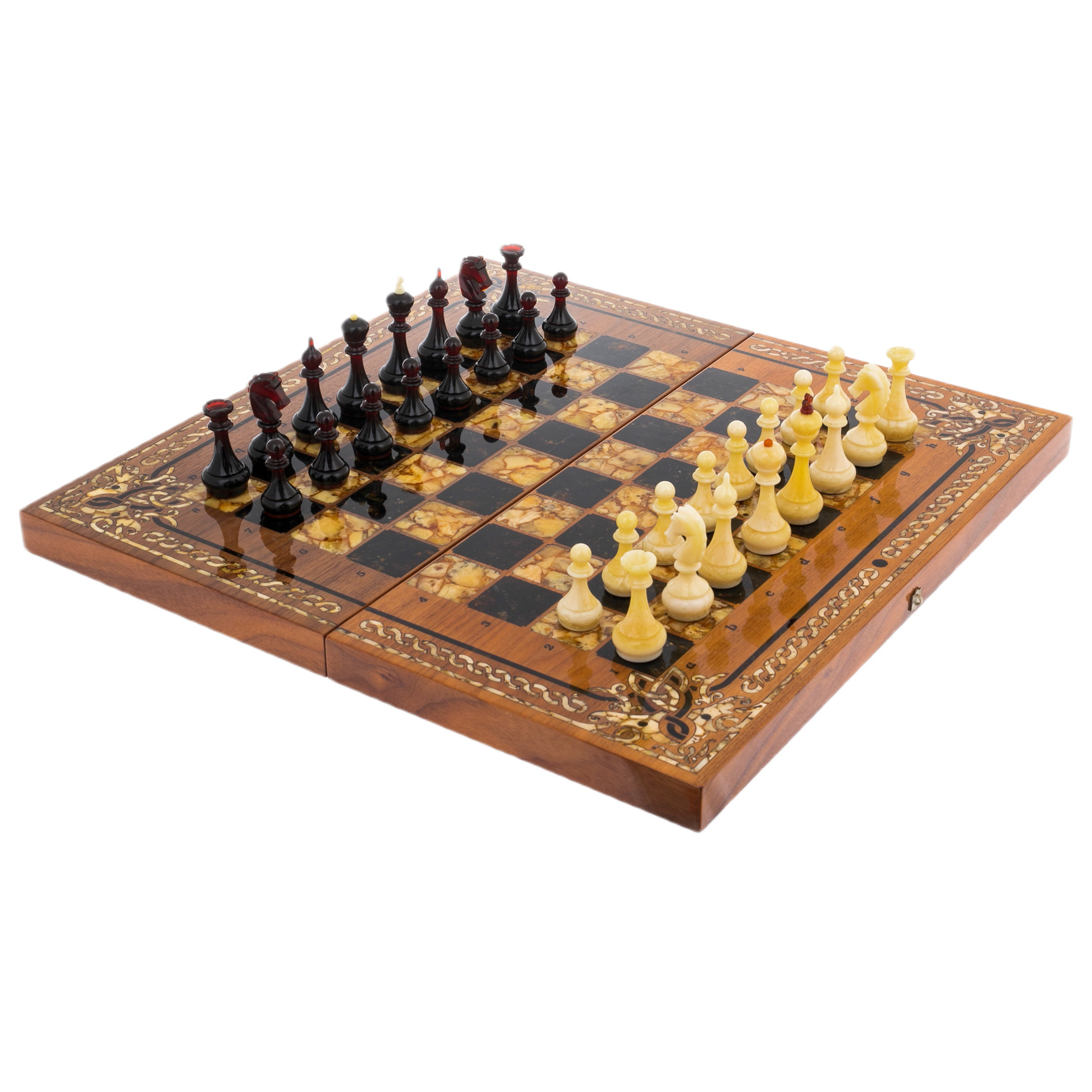 Шахматы из ореха и янтаря "Арабески-Тина"