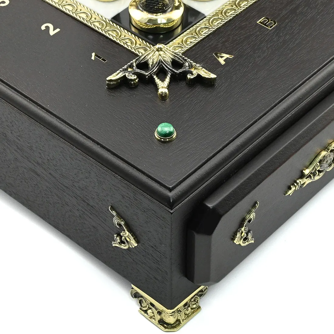 Materials:wood, marble, dolerite, decorated with malachite inserts, bronze.