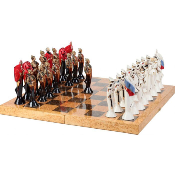 Chess of this level is available in limited quantities and is a coveted piece for collectors all over the world. At one time, such chess became a valuable gift for Viktor Chernomyrdin, Eduard Shevarnadze, Egor Gaidar, Sergei Shoigu, Alexei Venediktov, Evgeny Chichvarkin and many other Russian politicians, cultural and media figures, and businessmen. Each piece of the collection - from the King to the pawn - is a real historical character with detailed and reliable drawing of facial features, weapons and uniforms. All the figures are handmade from porcelain and painted using glaze and gilding. The board is made of solid Karelian birch and is a work of art in itself.