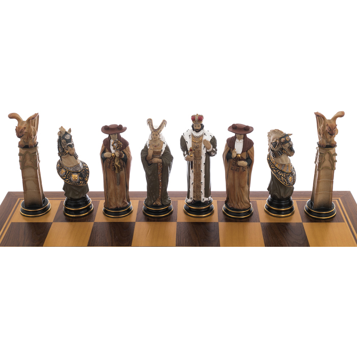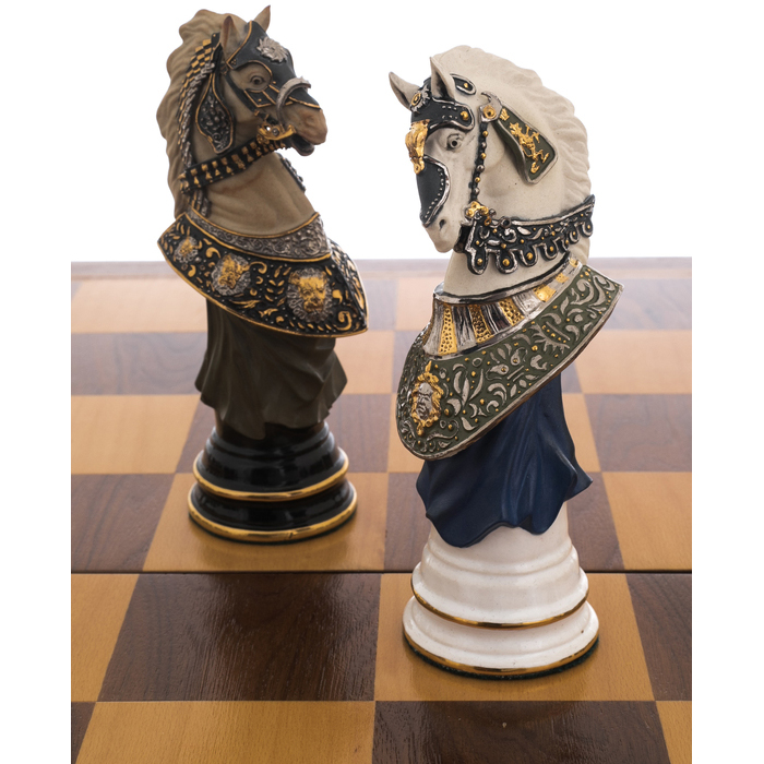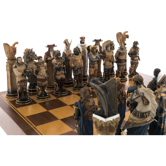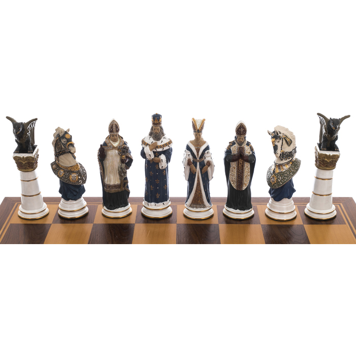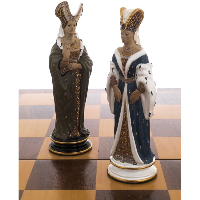 Materials:chess – porcelain, glazes, gilding, silvering, salts, chandeliers, paints, chessboard made of precious wood veneer.
