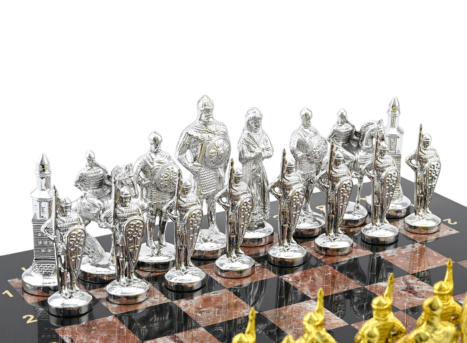 Chess made of crenoid and dolerite "Rus"