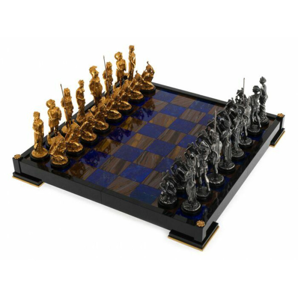 Amazon chess is the true embodiment of luxury and craftsmanship. The chessboard, made of shining lapis lazuli and a warm tiger's eye, creates a game of contrasts and brilliance, reflecting the nobility and elegance of the game. The chess pieces, worked out to the smallest detail, represent the Amazonian warriors, each of whom expresses a unique character and strength.