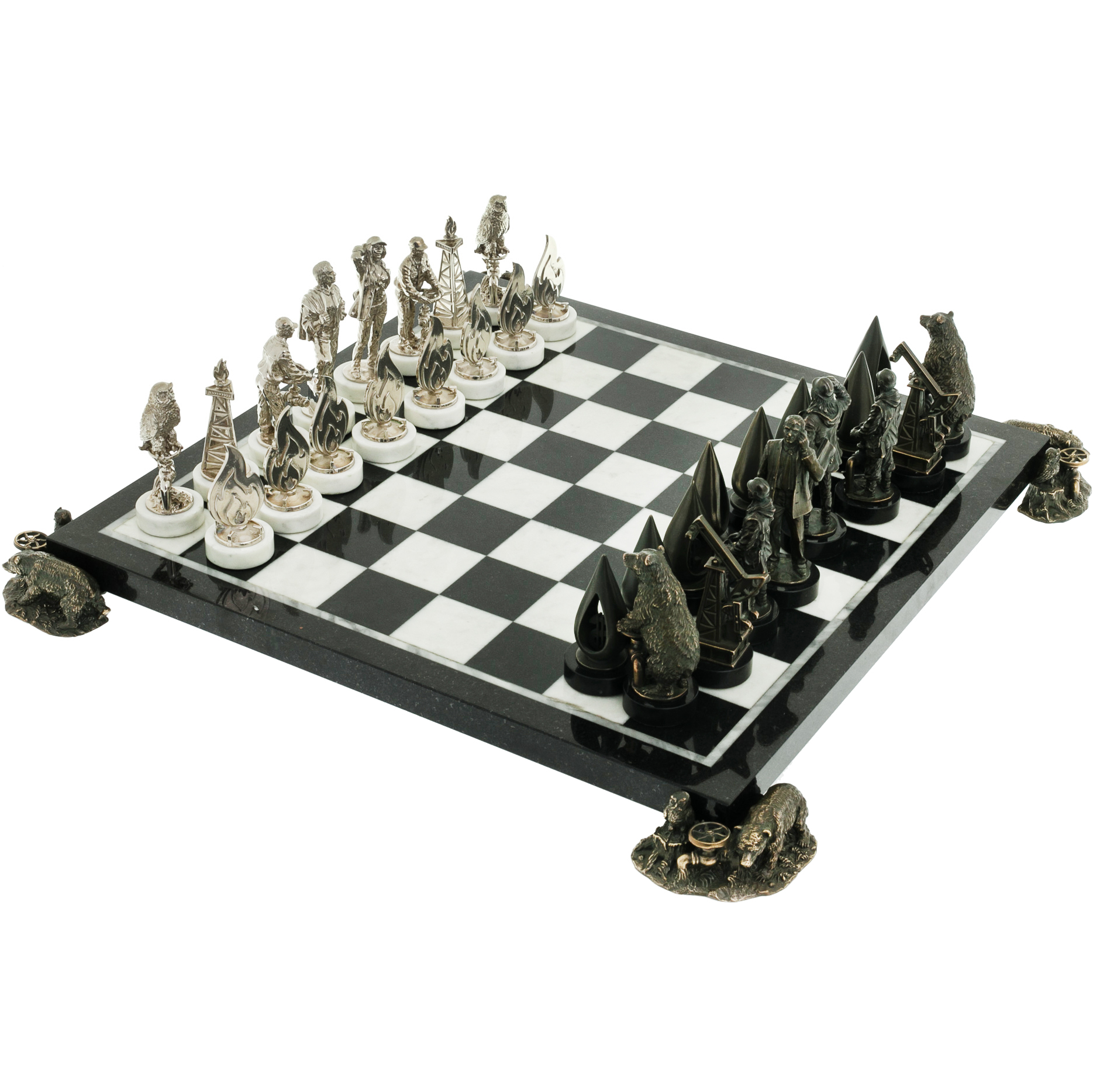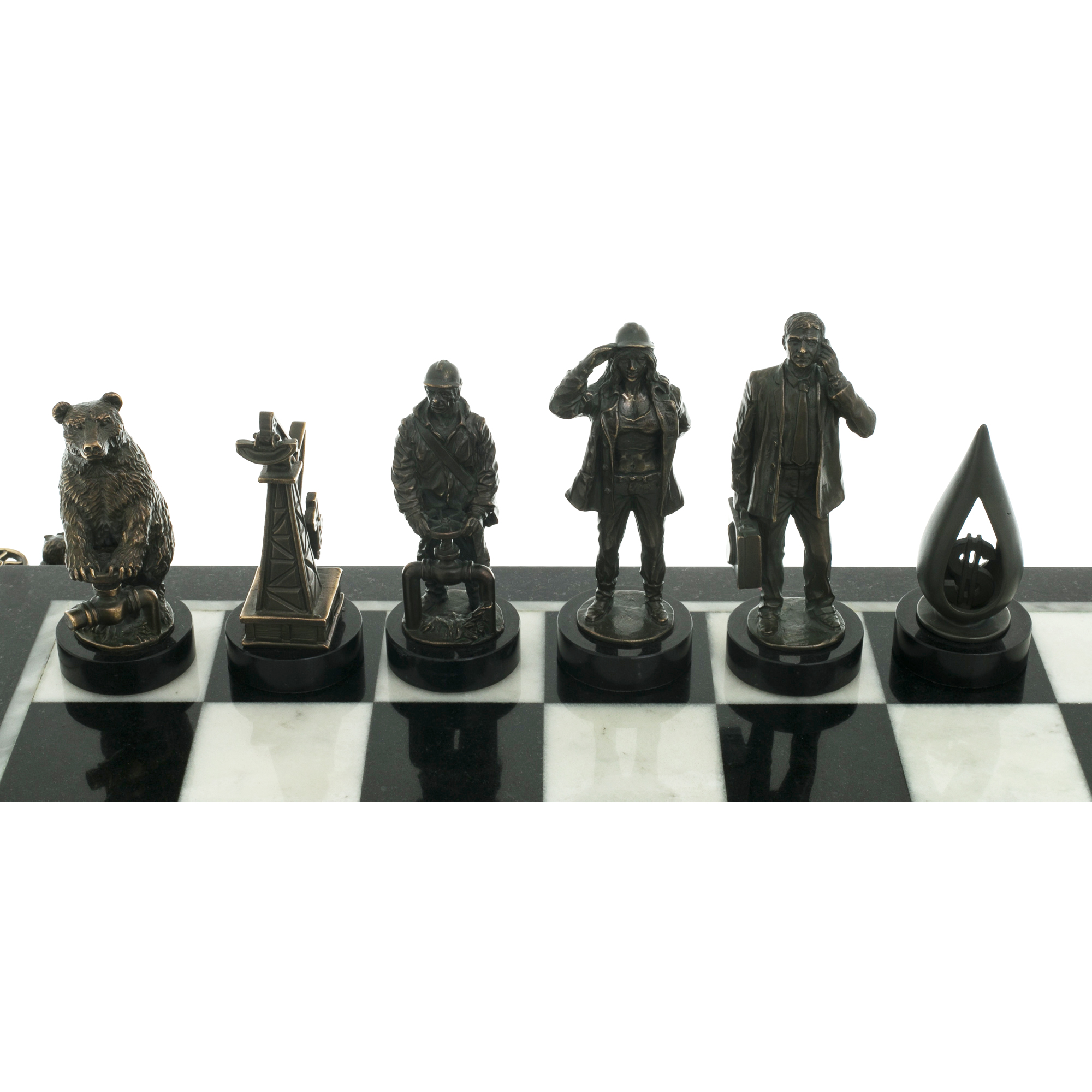 Marble and dolerite chess "Gas and Oil" bronze figures