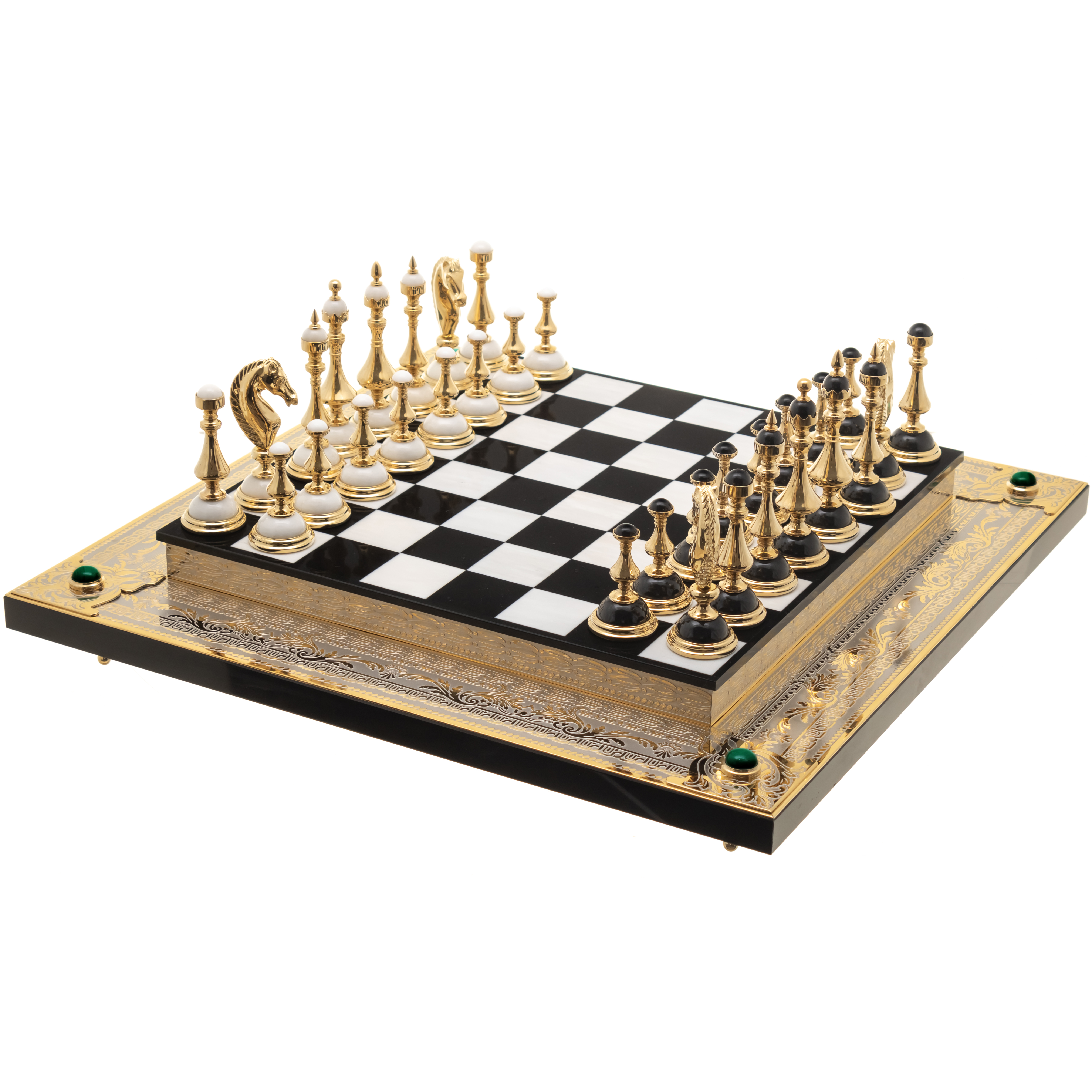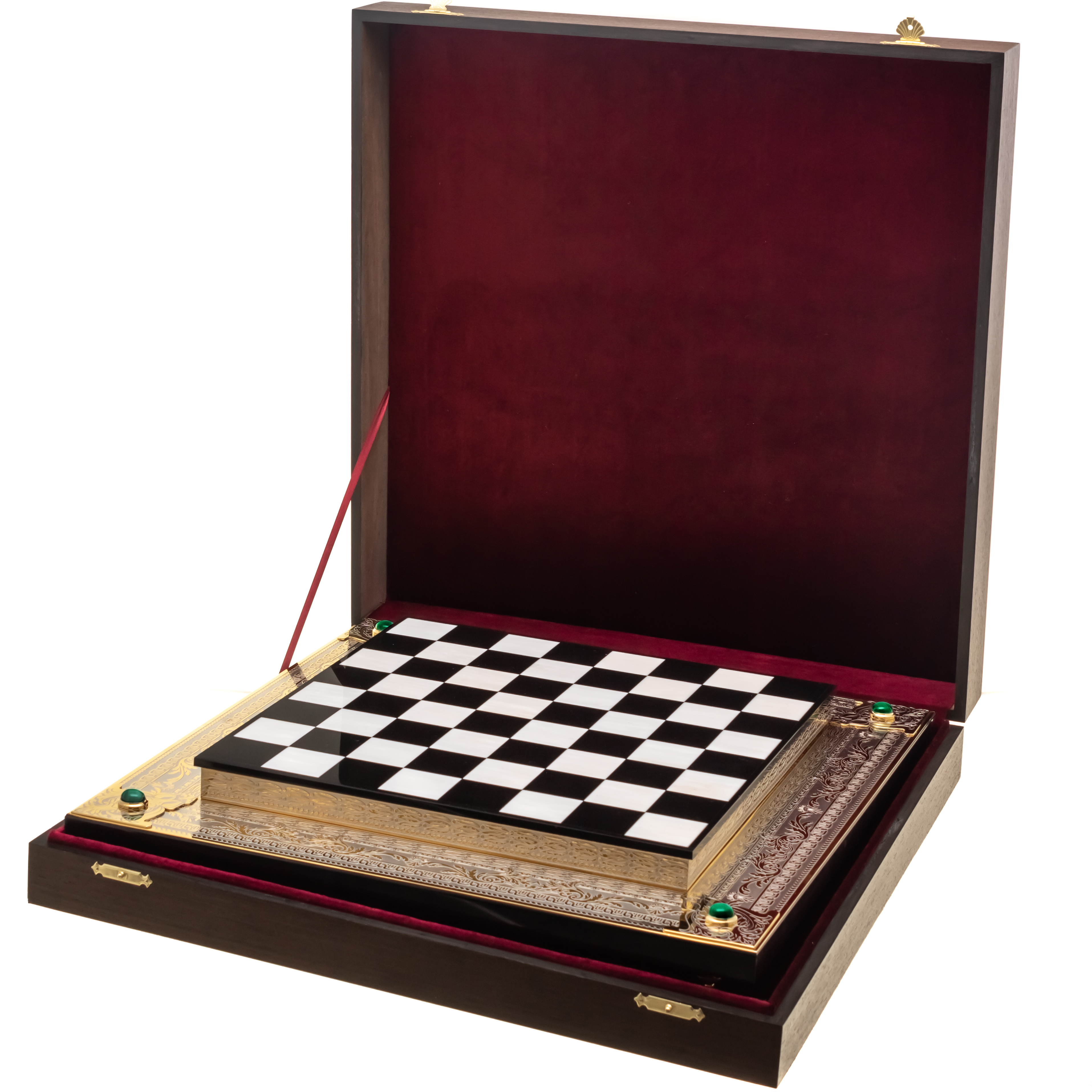 Chess made of malachite, dolerite and agate "The Gift of Chrysostom" Zlatoust