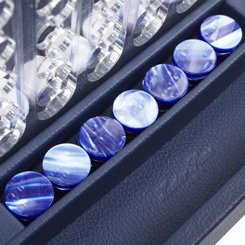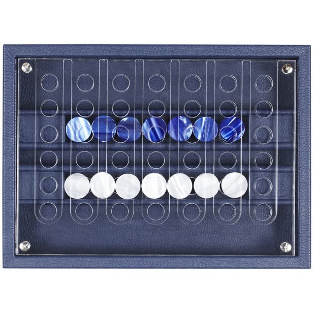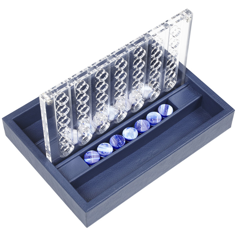 Exclusive board game "Four in a row" made of Buffalo leather, blue