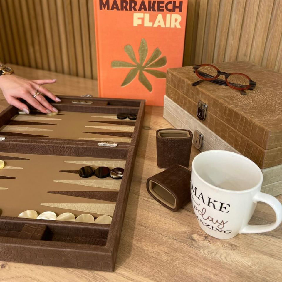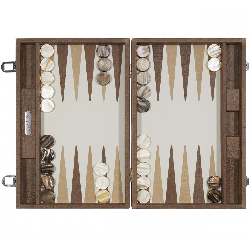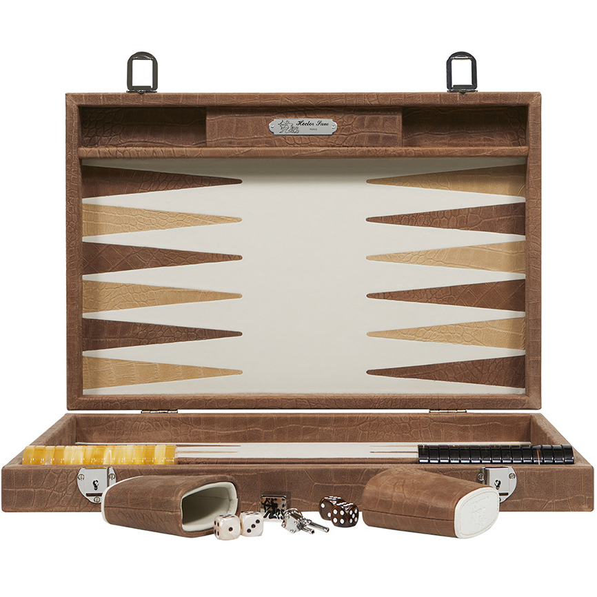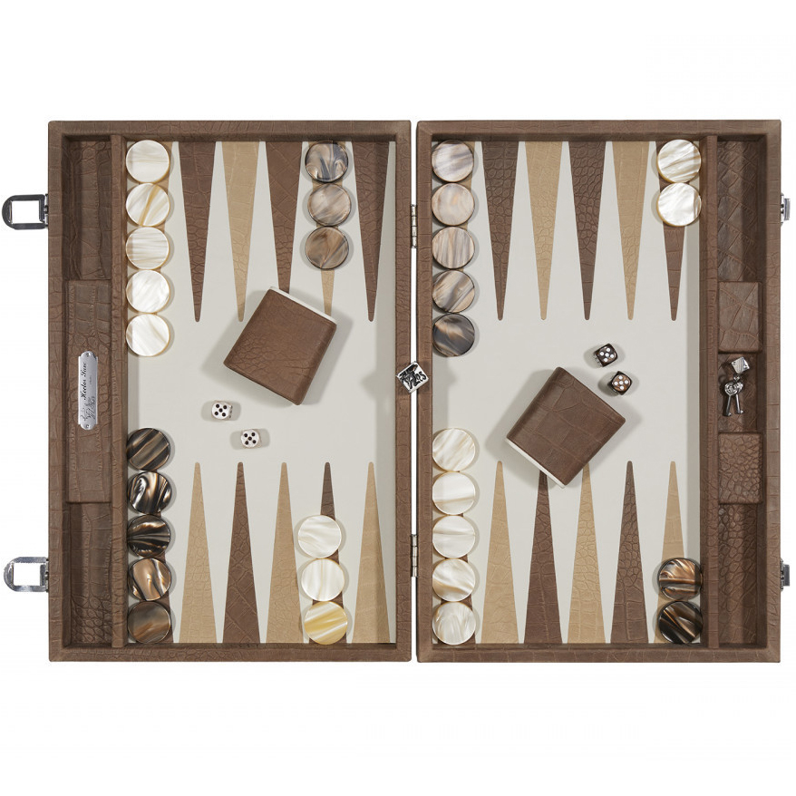Exclusive backgammon set "Alain" made of leather, beige, large