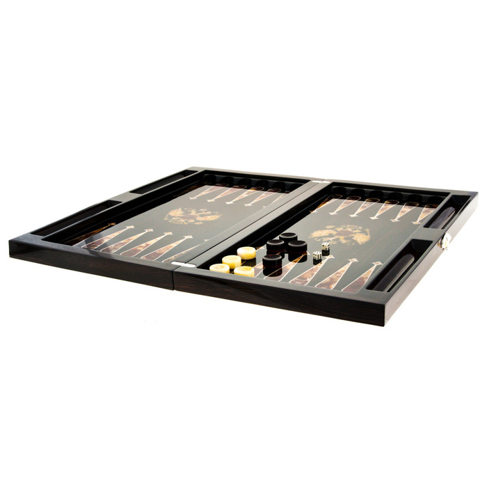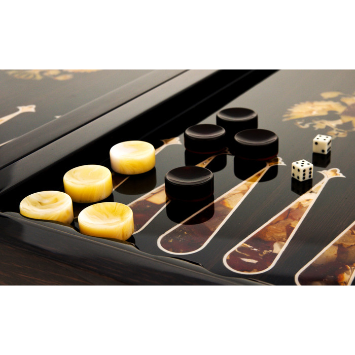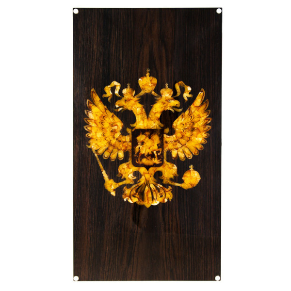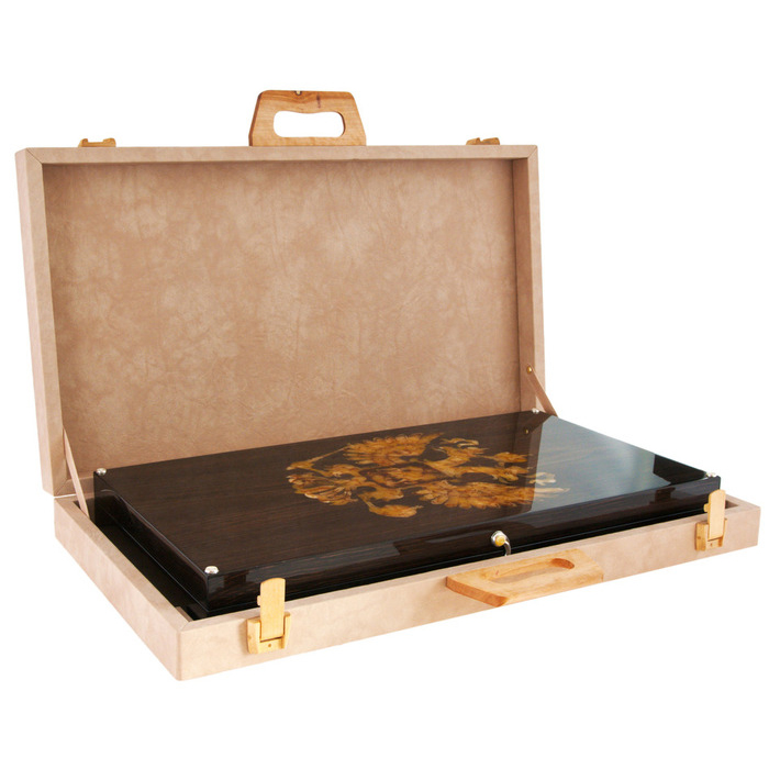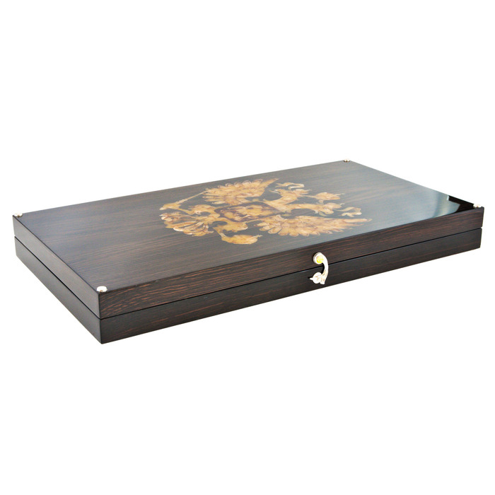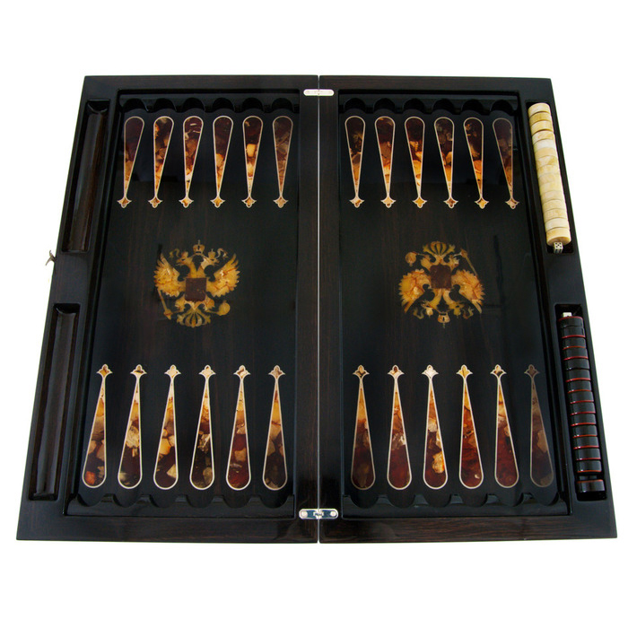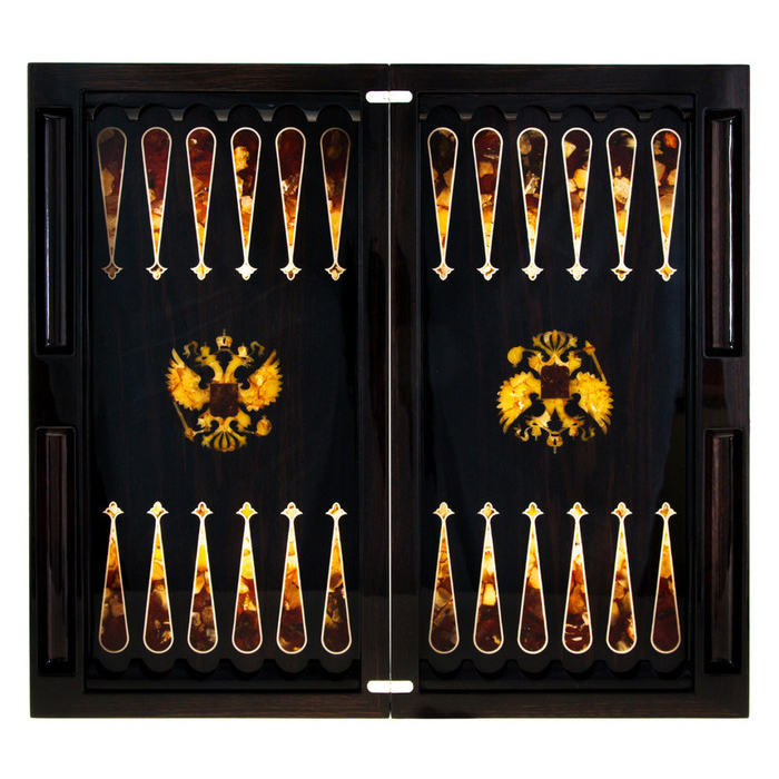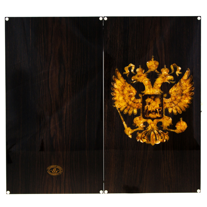Backgammon made of stained oak and amber "Coat of Arms of the Russian Federation"