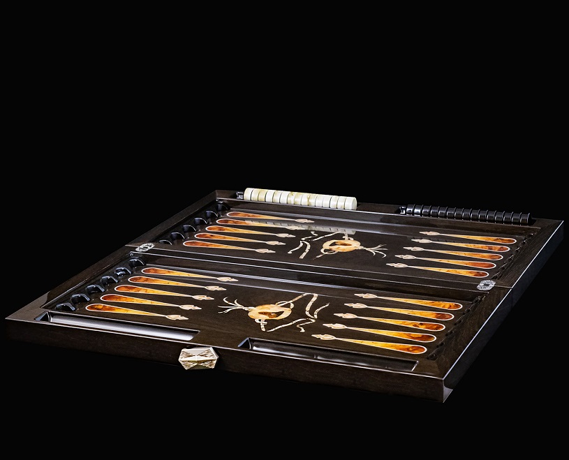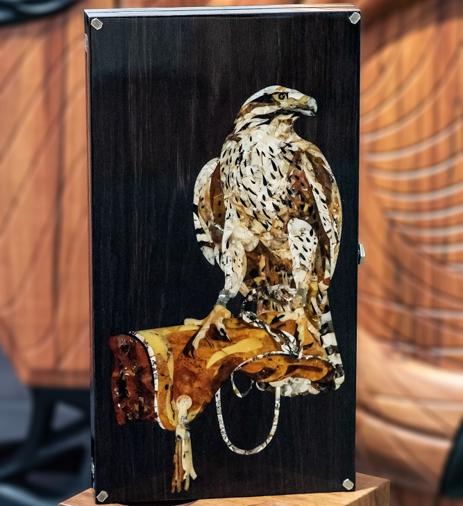 Backgammon made of stained oak and amber "Falconry" collection "Classics"