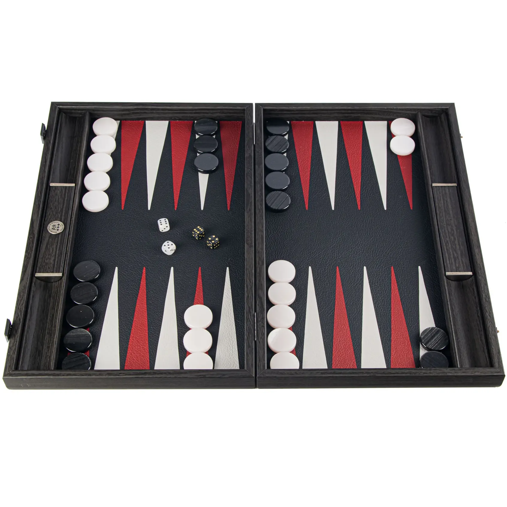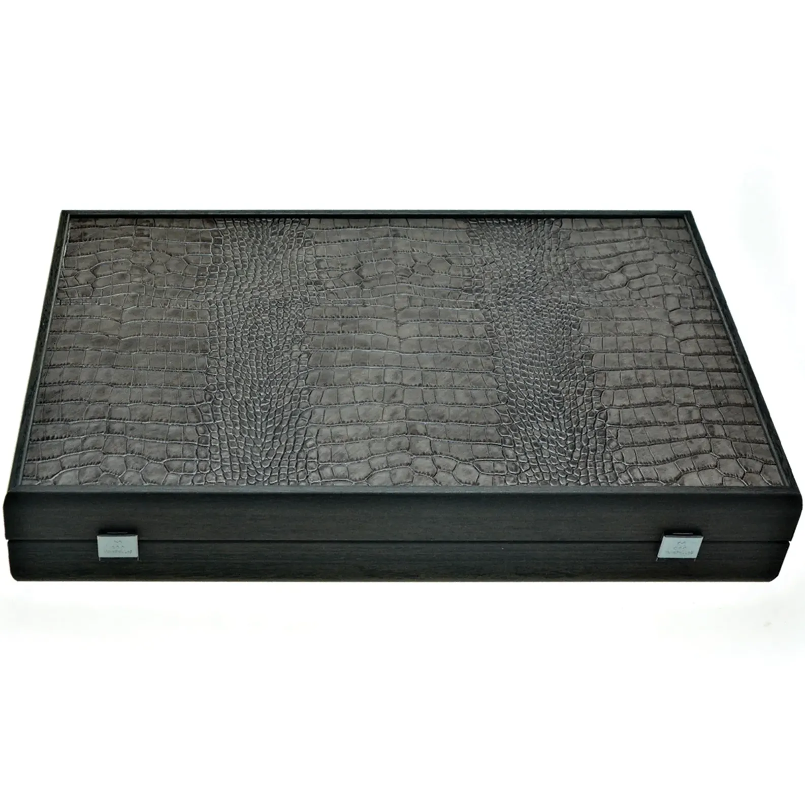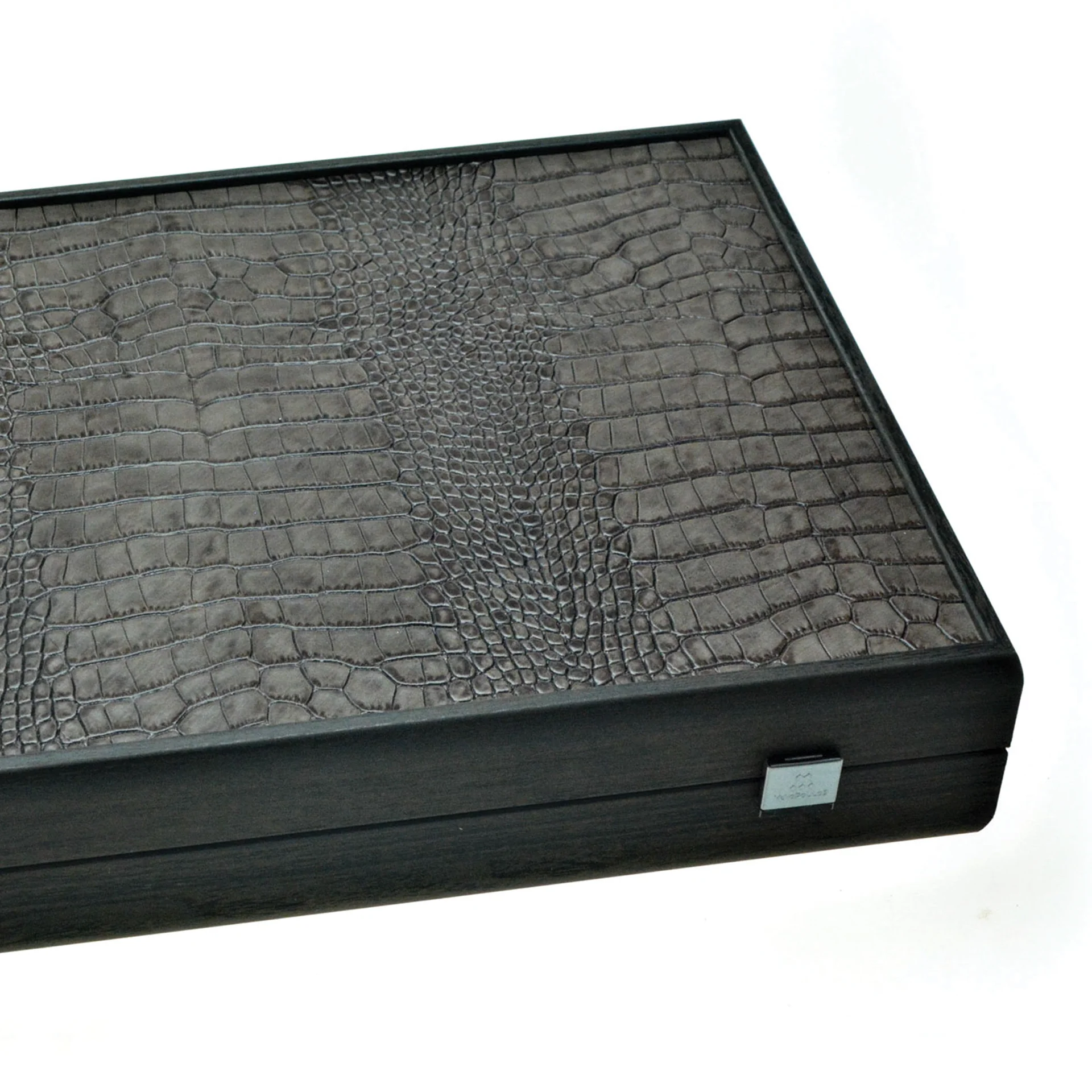 Backgammon made of veneer and crocodile skin "Manopoulos" dark gray