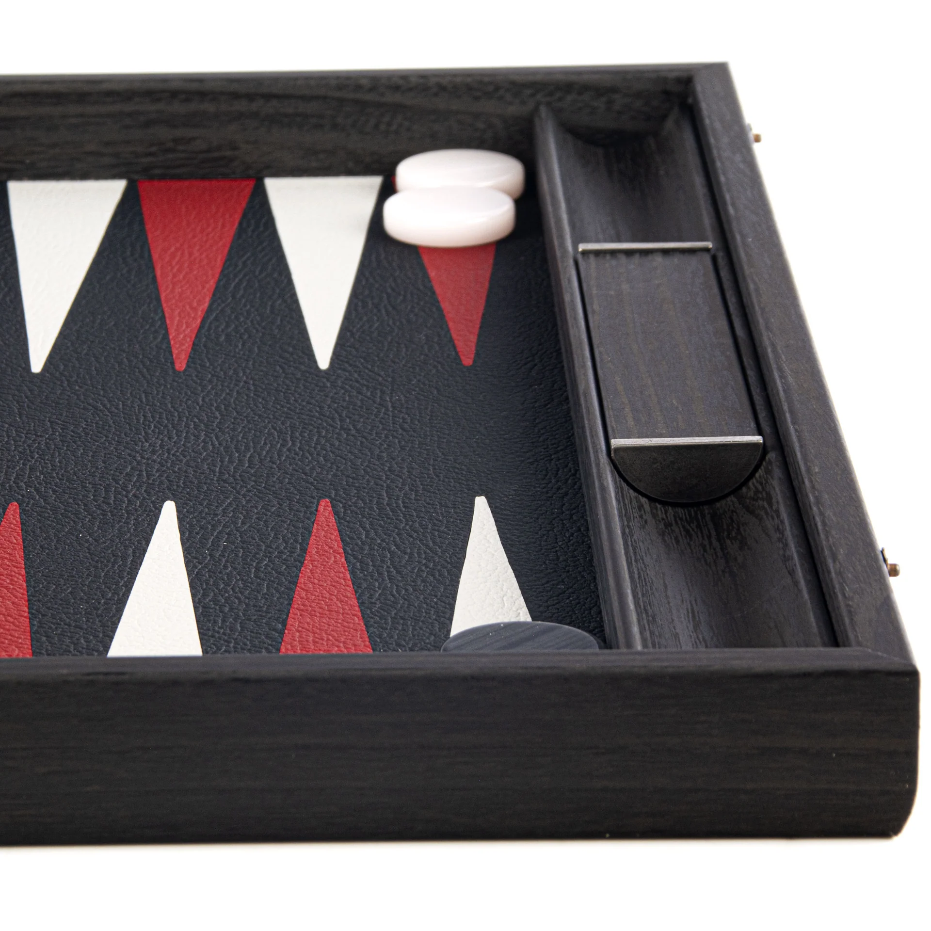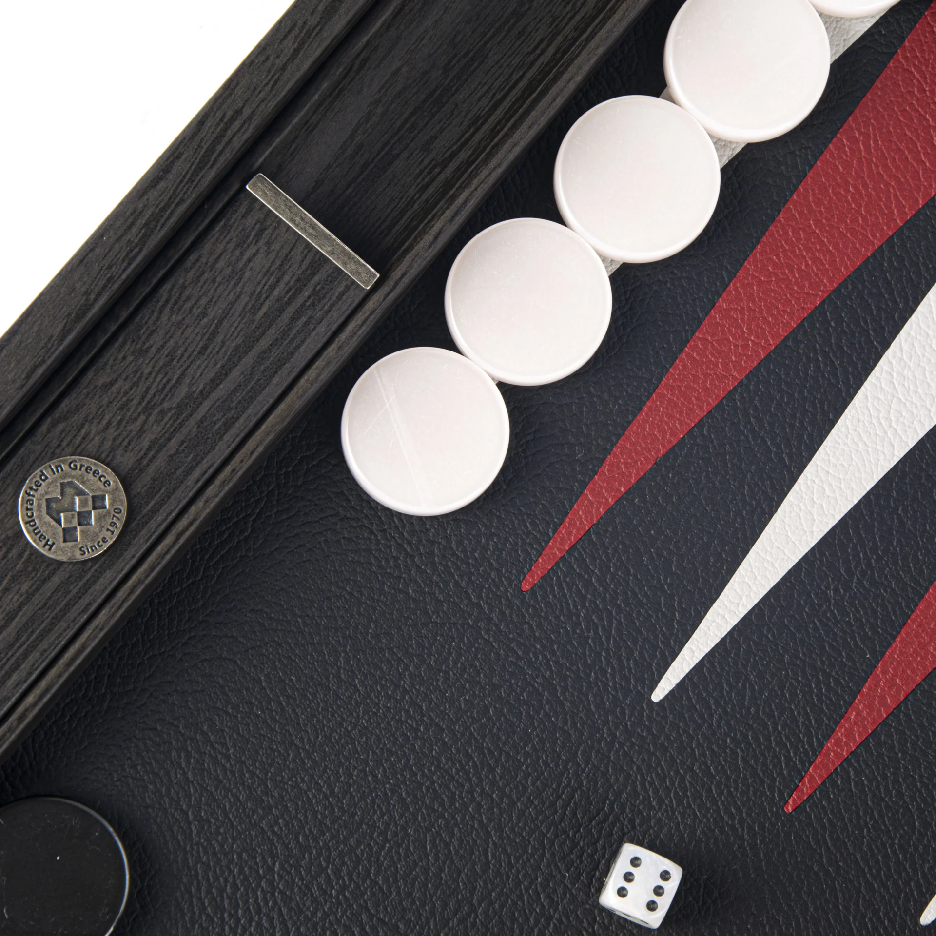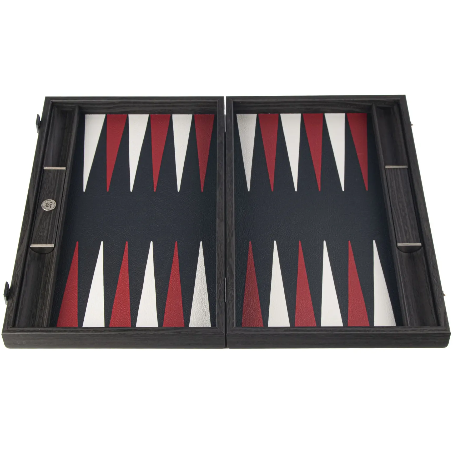 Backgammon made of veneer and crocodile skin "Manopoulos" dark gray