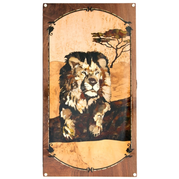 Backgammon made of stained oak and amber "Lion"Backgammon made of stained oak and amber "Lion"The impeccable quality and exclusive design of elite backgammon will not leave indifferent a true connoisseur of good-quality and beautiful things! These backgammon are handmade from natural amber in the "Kovrov mosaic" technique. The texture of the materials is unique: it is impossible to make two completely identical backgammon. Amber composite of various shades is used for the manufacture of gaming accessories.