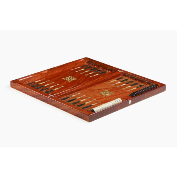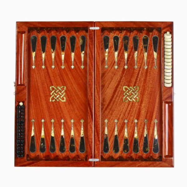 Backgammon made of stained oak "Ornament" of the Orient collectionBackgammon made of stained oak "Ornament" of the Orient collectionThe impeccable quality and exclusive design of elite backgammon will not leave indifferent a true connoisseur of good-quality and beautiful things! These backgammon are handmade from natural amber in the "Kovrov mosaic" technique. The texture of the materials is unique: it is impossible to make two completely identical backgammon. Amber composite of various shades is used for the manufacture of gaming accessories.
