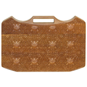 This is a completely unique set of poker chips. Its body is a carved suitcase made entirely of an array of stained ash. Both halves are made of glued panels, which reduces the risk of warping and deformation of wood during operation. The front panel is covered with stylized Arabic wood carvings. It consists of: