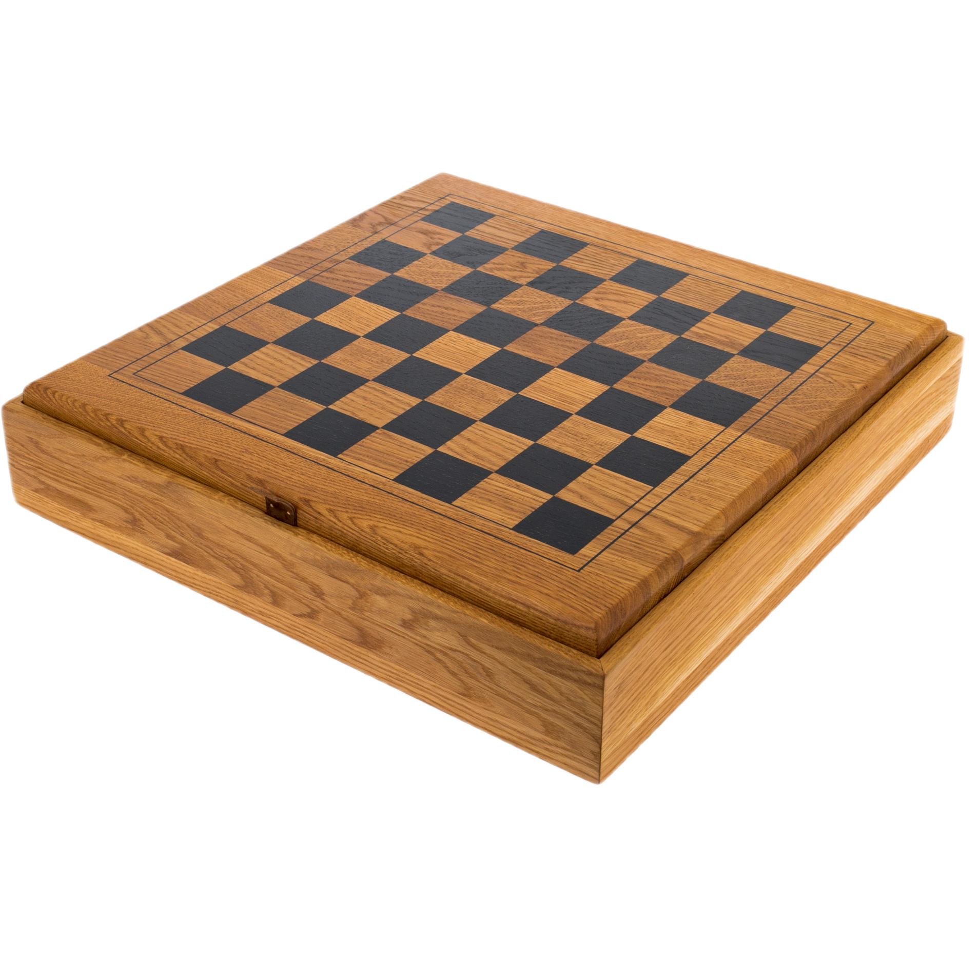 Игровое поле выполнено из натурального дерева с глубоким тоном и естественной текстурой, придающей ансамблю теплоту и благородство. Внутреннее отделение с мягким ложементом обеспечивает бережное хранение фигур, превращая шахматы в полноценный арт-объект.