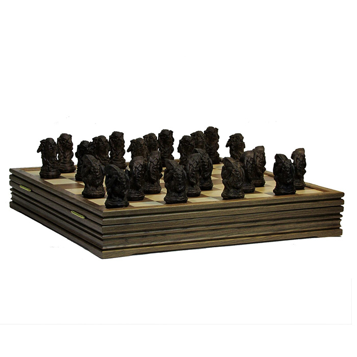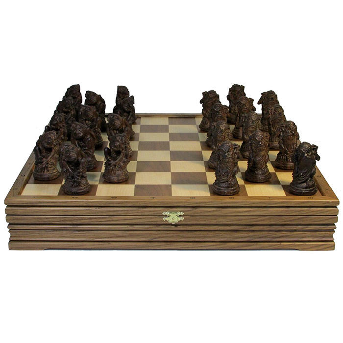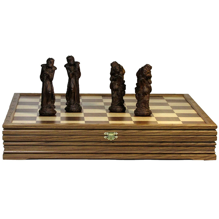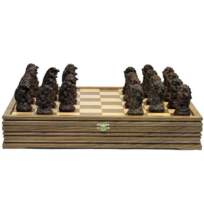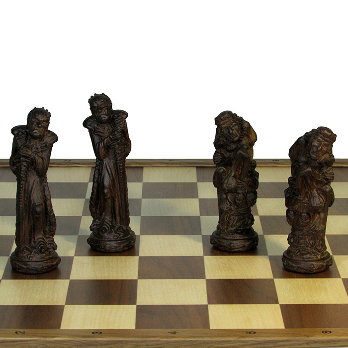 Шашки из черного ореха "Нечисть" на дубовой доске