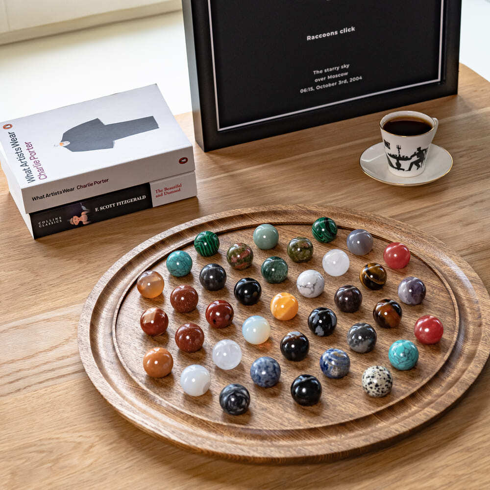 Materials: valuable woods, a mix of semi-precious stones (gems).
