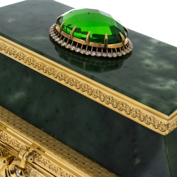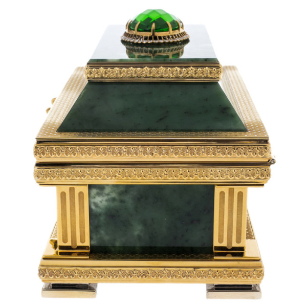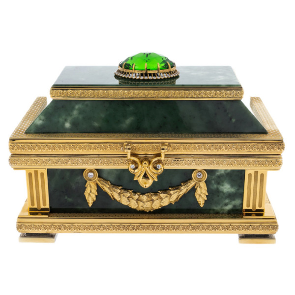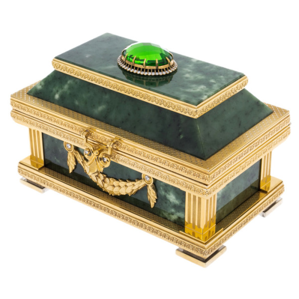 Casket made of malachite "Fabulous East"Casket made of malachite "Fabulous East"The products are made of high quality natural materials. The filigree elaboration of details characterizes the impeccable work of the master.