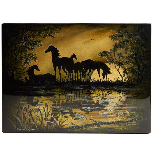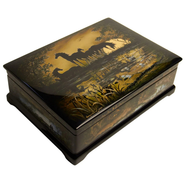 The Fedoskino casket is a work of lacquer art, created manually using ancient technologies.