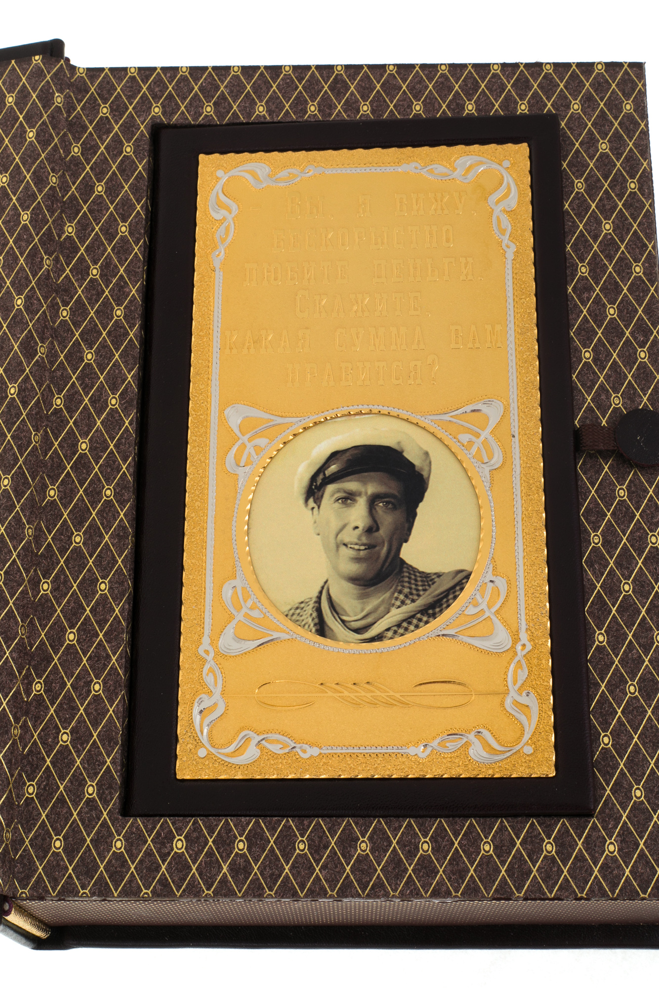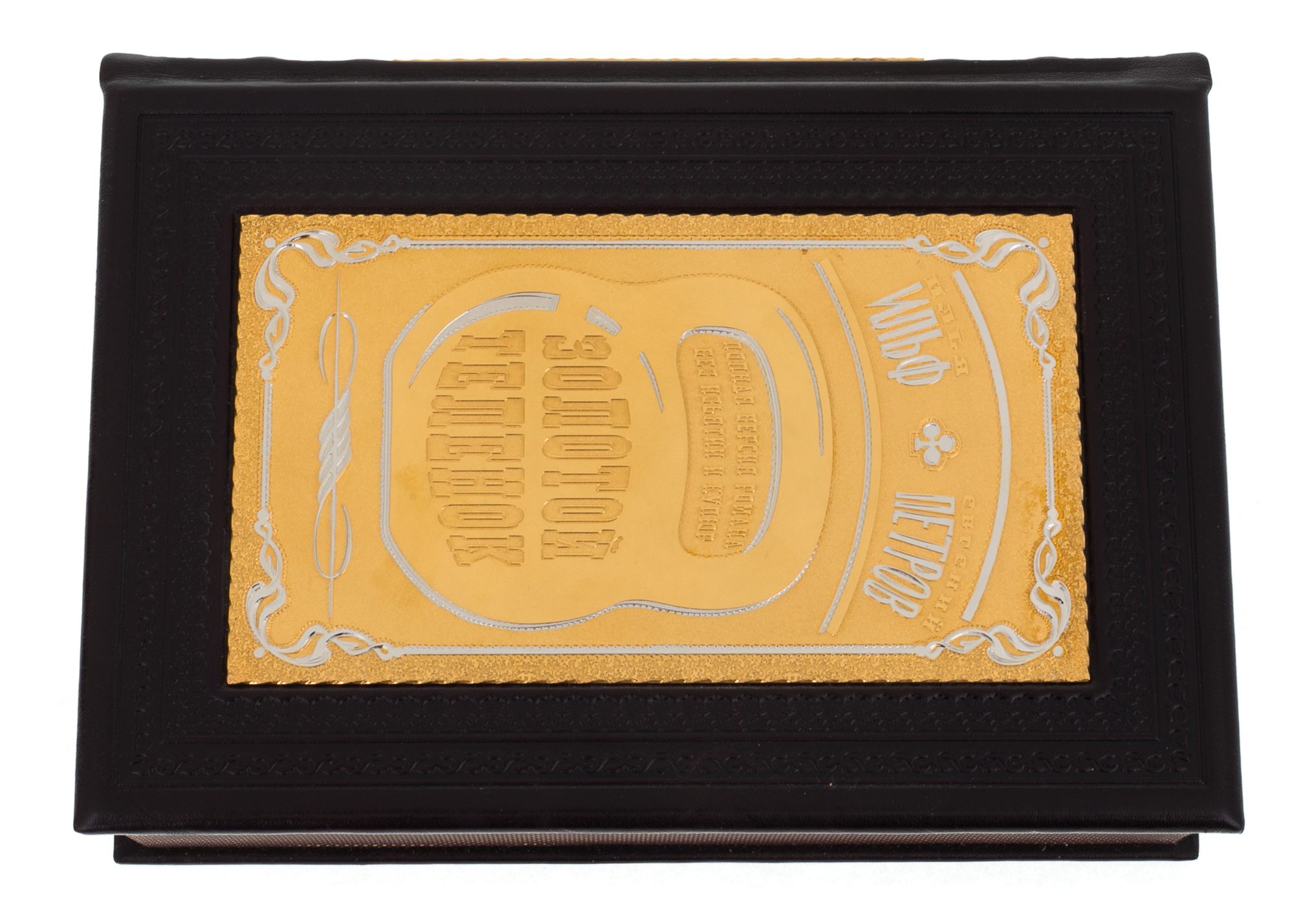 Materials:gilt, nickel, handmade embossed leather binding with artistic inserts.