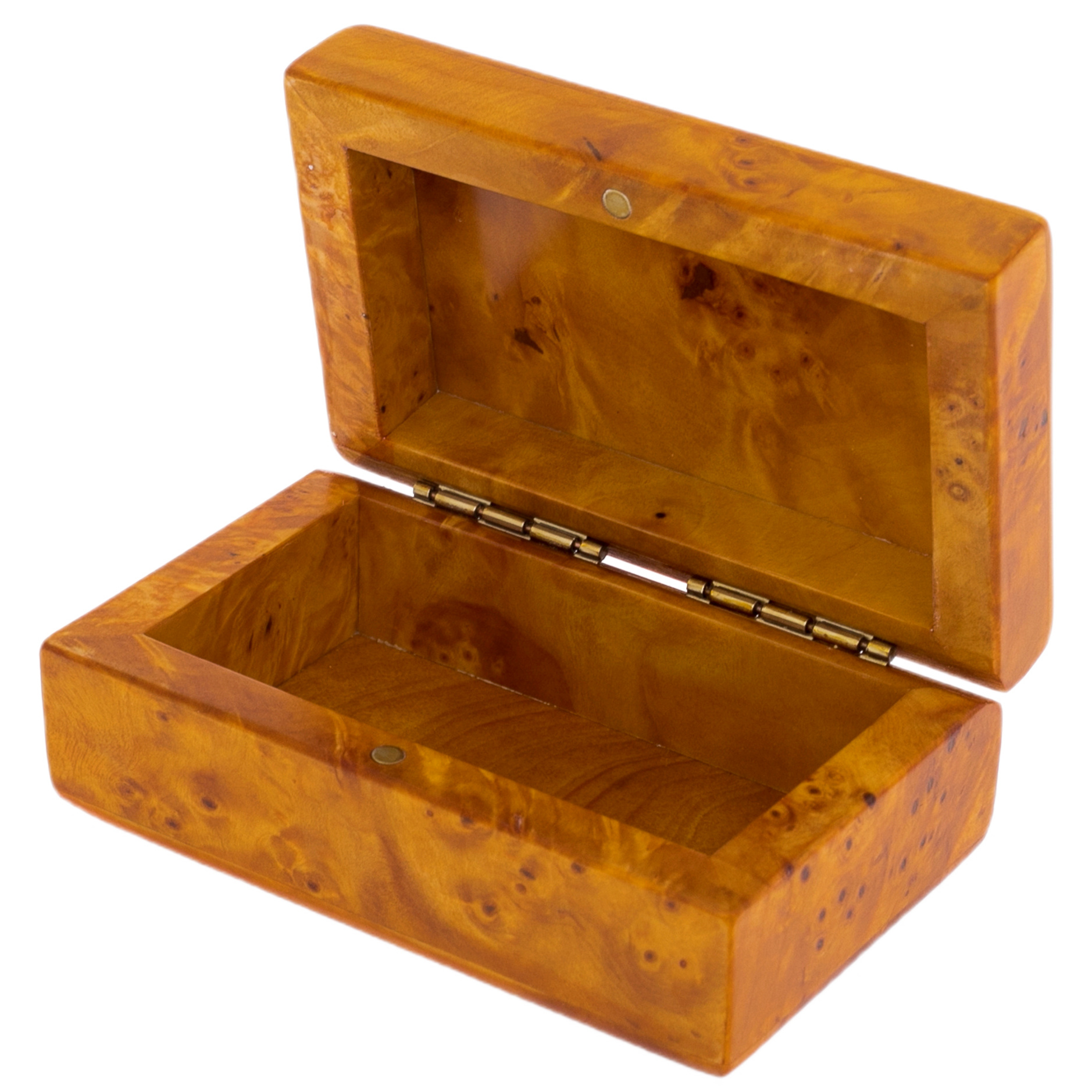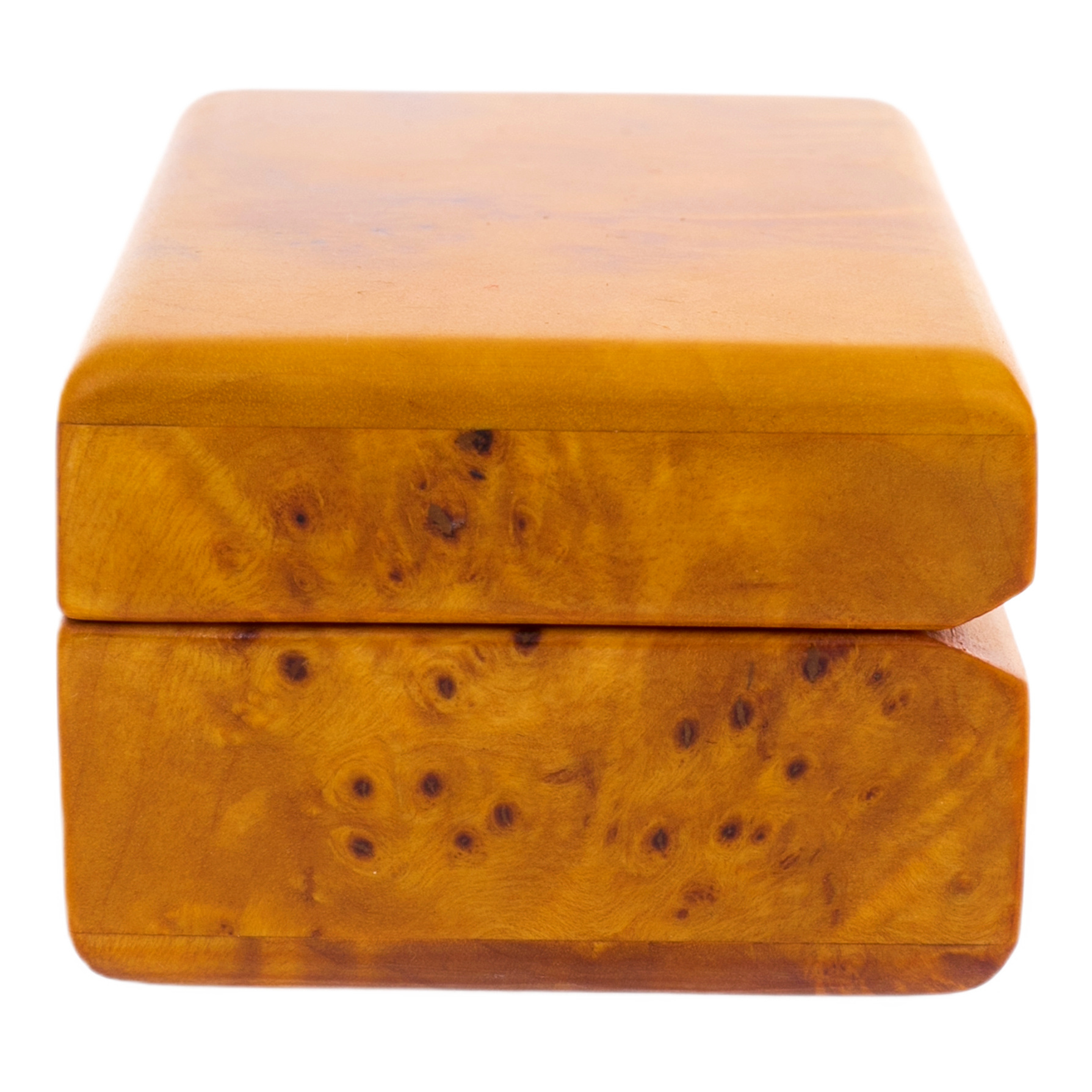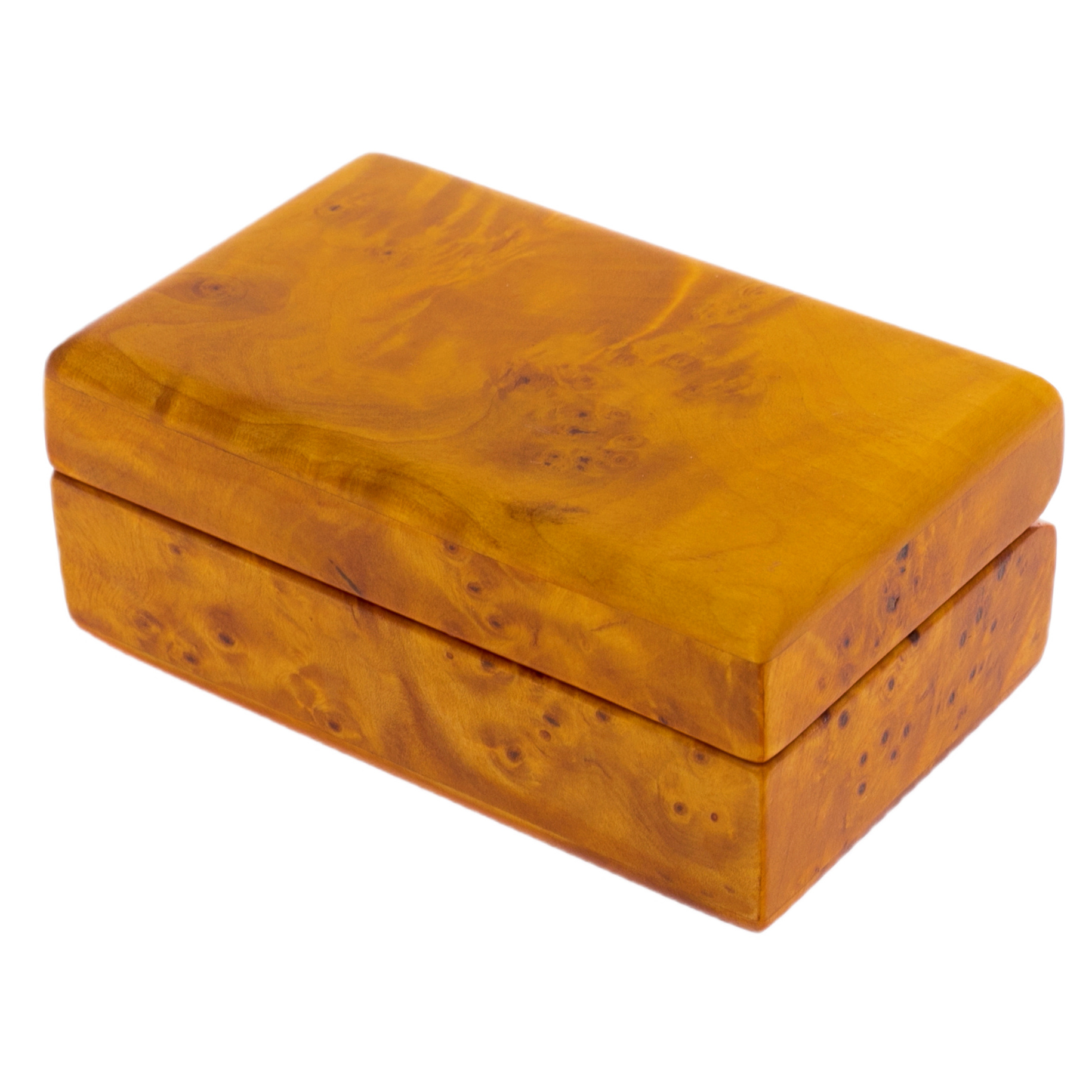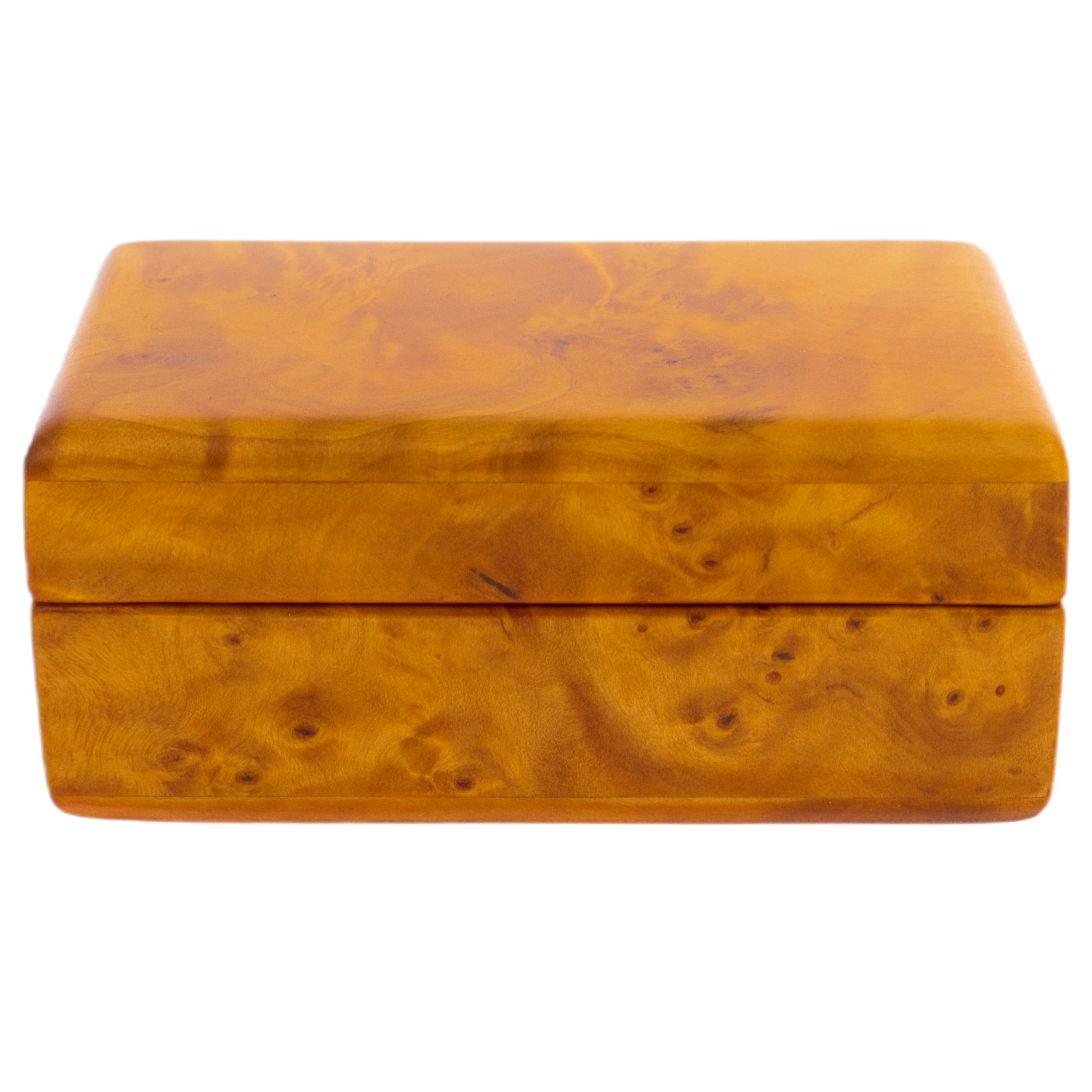 Карельская берёза — это одна из самых ценных пород древесины, известная своей прочностью и выразительной текстурой. Её узоры напоминают живописные природные картины, а долговечность и устойчивость к внешним воздействиям делают изделия из неё особенно ценными. Такая шкатулка станет не только надёжным хранилищем для ваших сокровищ, но и настоящим украшением вашего дома, символом вкуса и уважения к традициям мастерства.