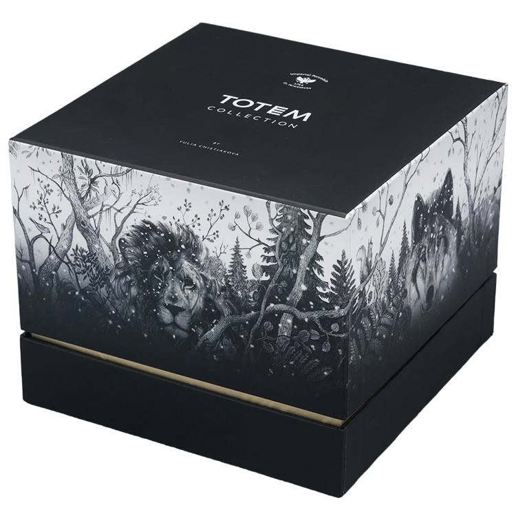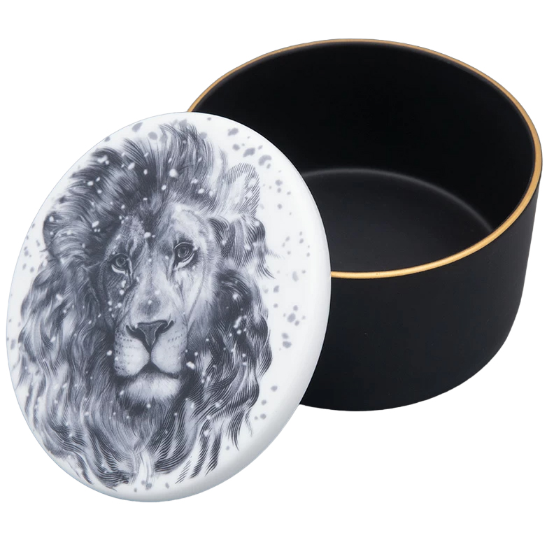 Bone china box "Idyll" with the pattern "Totem. The Lion"