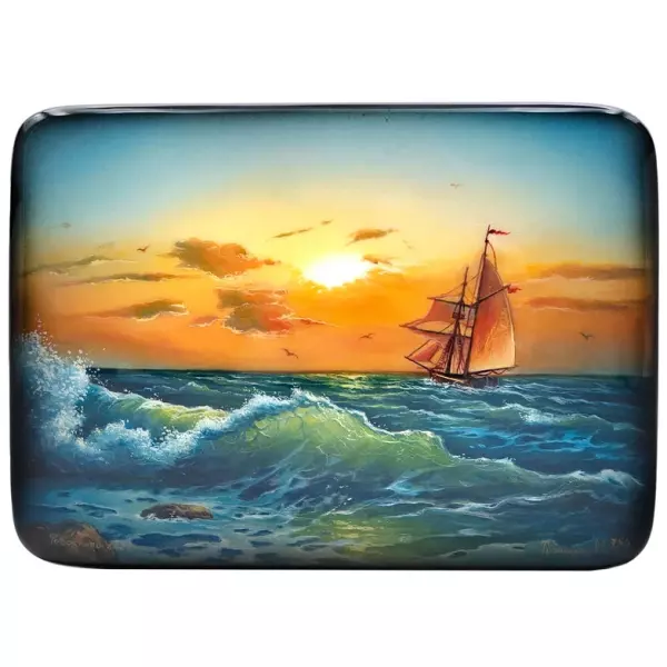 A distinctive feature of the Fedoskin miniature is realism, achieved through complex multi—layered oil painting. Delicate reflections of gold leaf, silver, and mother-of-pearl are applied to this picturesque base, creating an effect of glow and depth. Each stroke becomes part of a majestic composition that comes to life in smooth transitions of light and shadow, emphasizing the finest details.