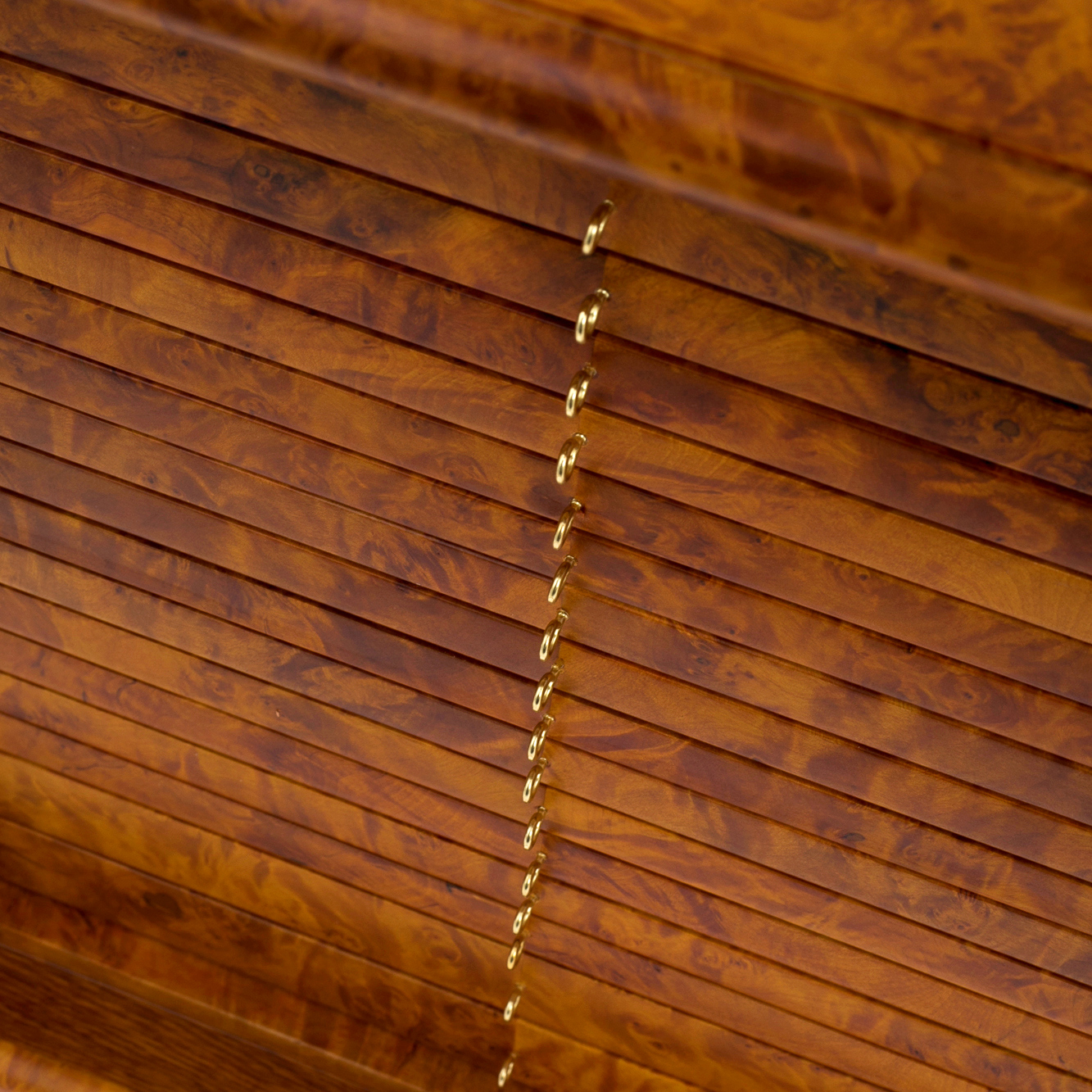 Карельская берёза славится своими уникальными текстурой и прочностью, что делает каждое изделие из неё настоящим произведением искусства. Этот вид древесины ценится за свою долговечность, устойчивость ко внешним воздействиям и красивый узор, напоминающий живописные пейзажи. Шкатулка-шкафчик из карельской берёзы — это не просто предмет мебели, а символ вкуса и статуса, который будет радовать владельца своими эстетикой и функциональностью долгие годы.