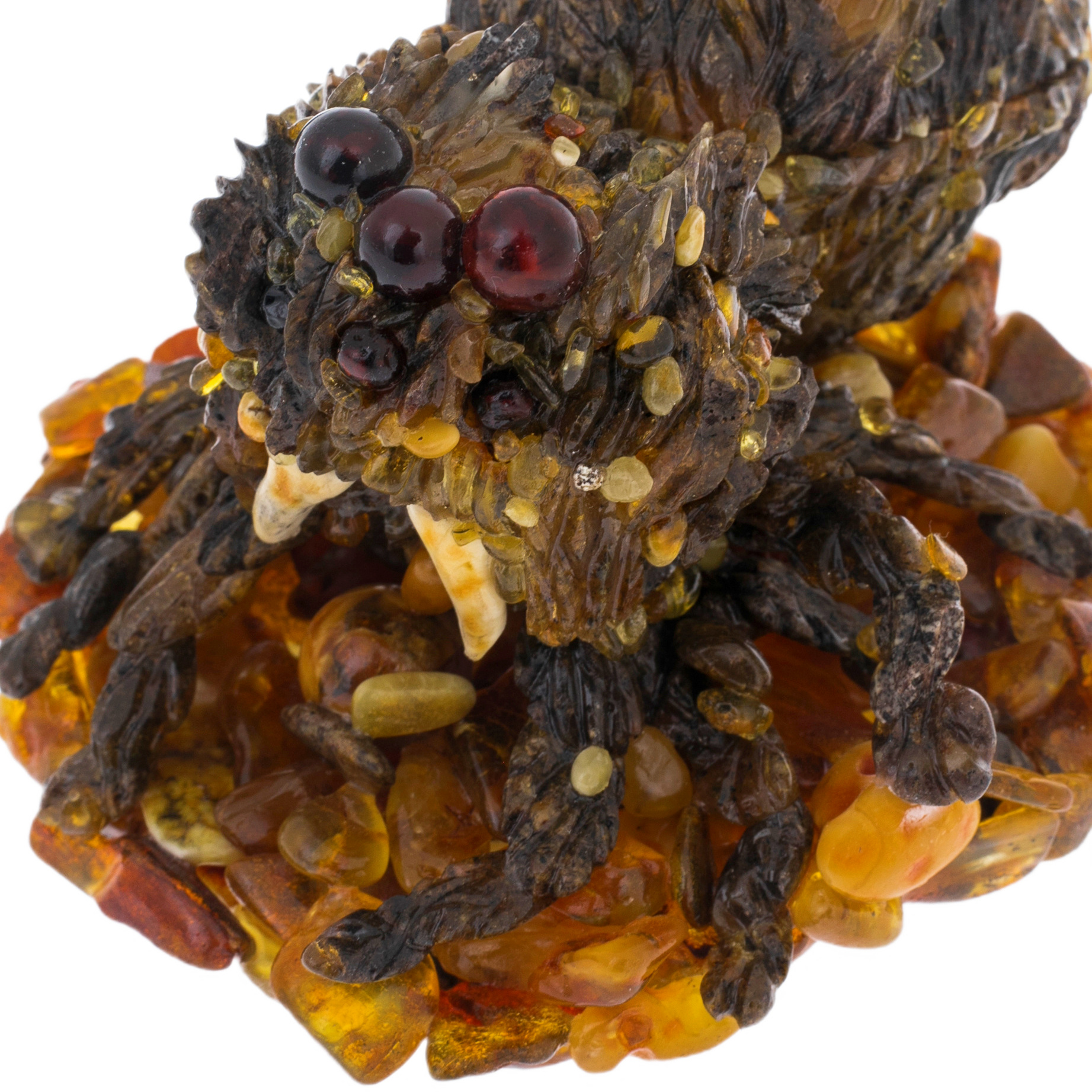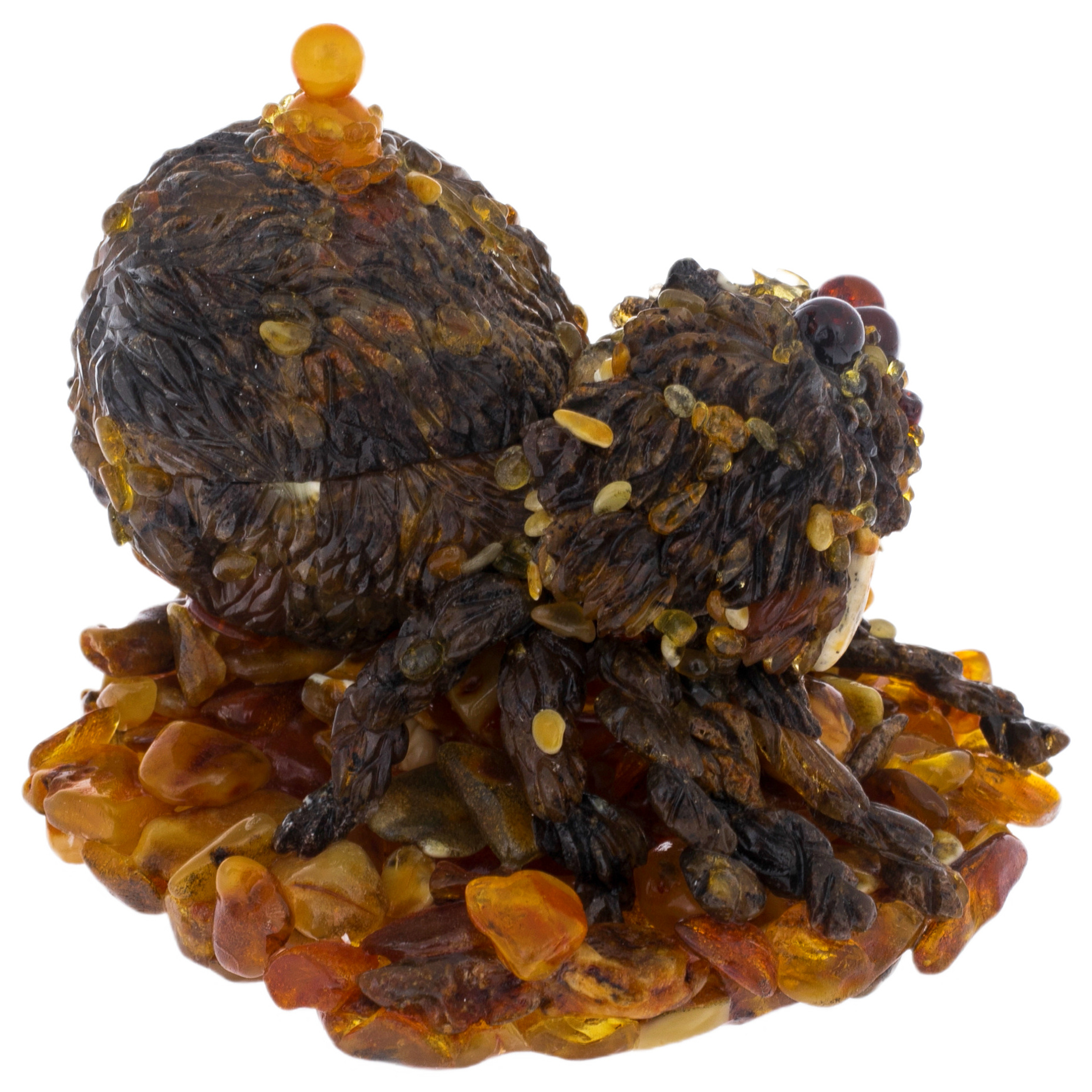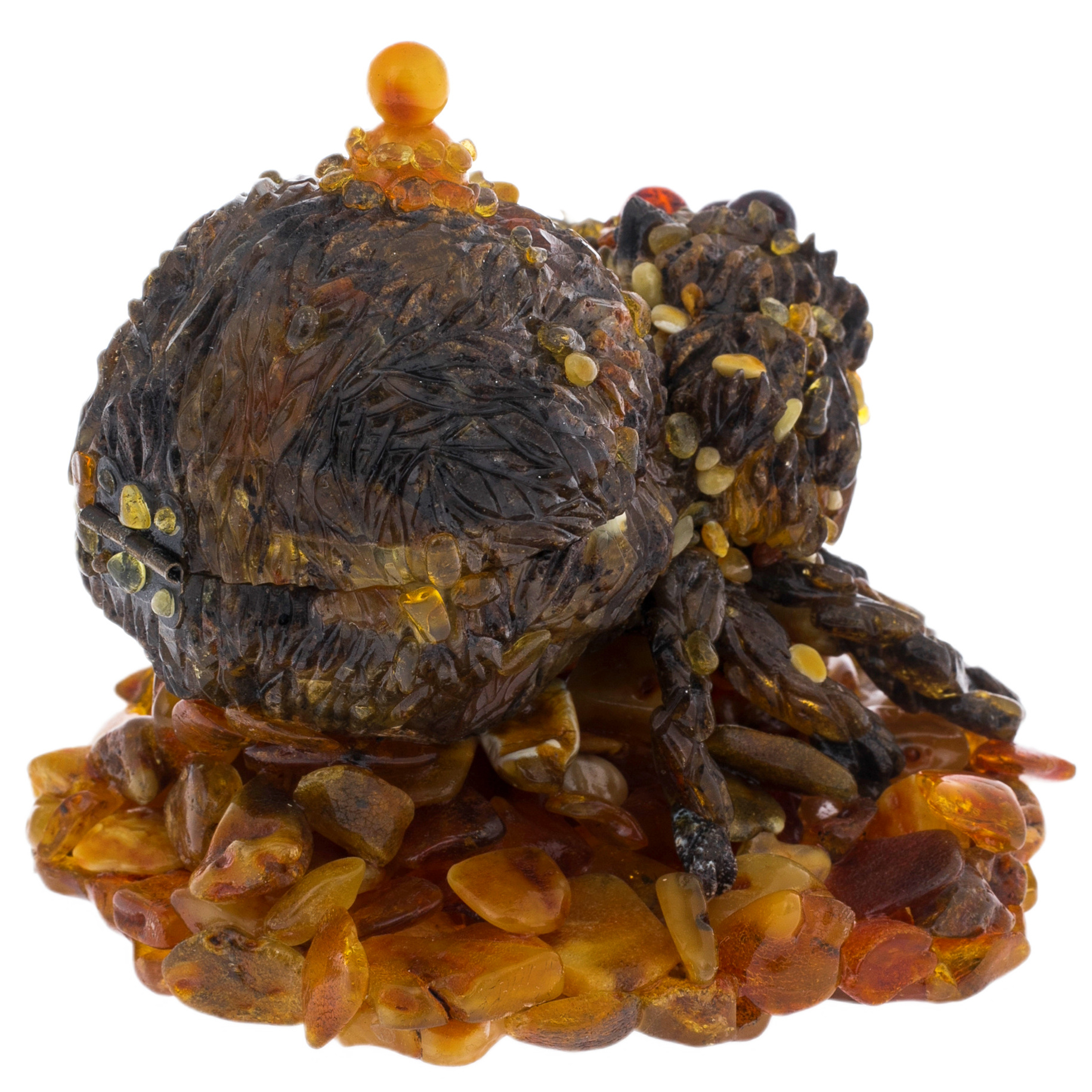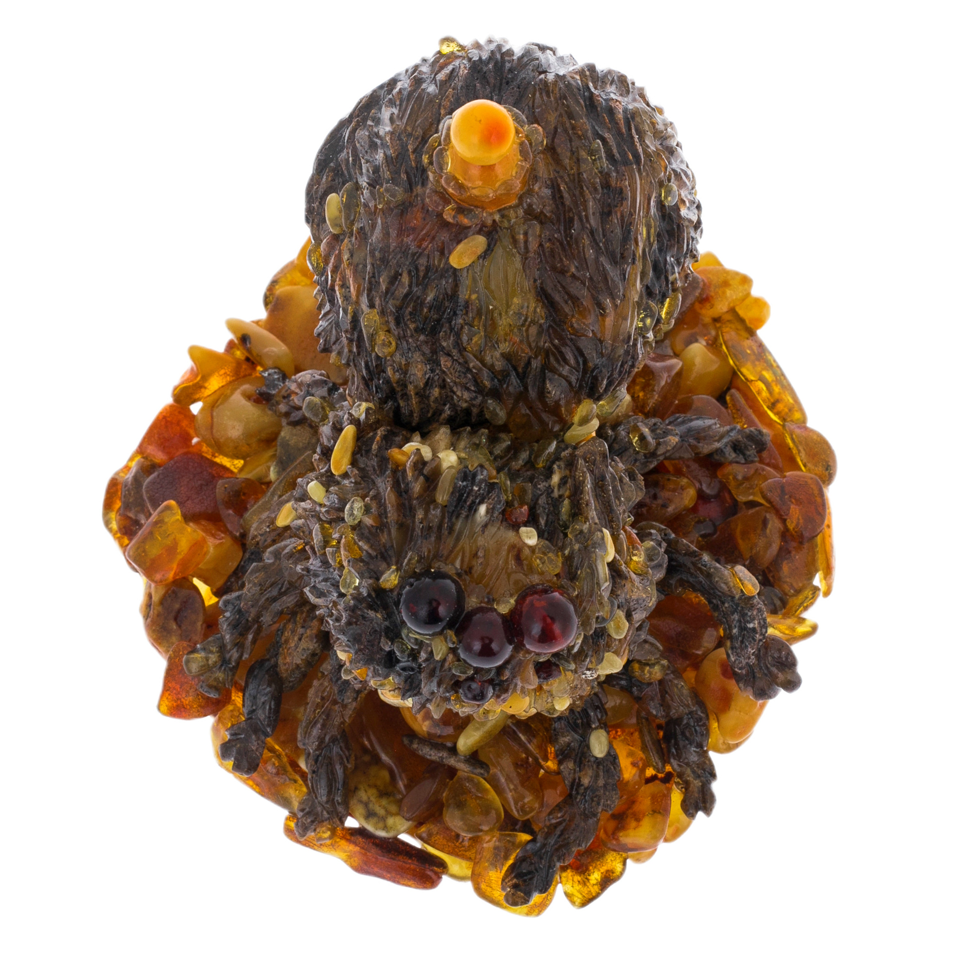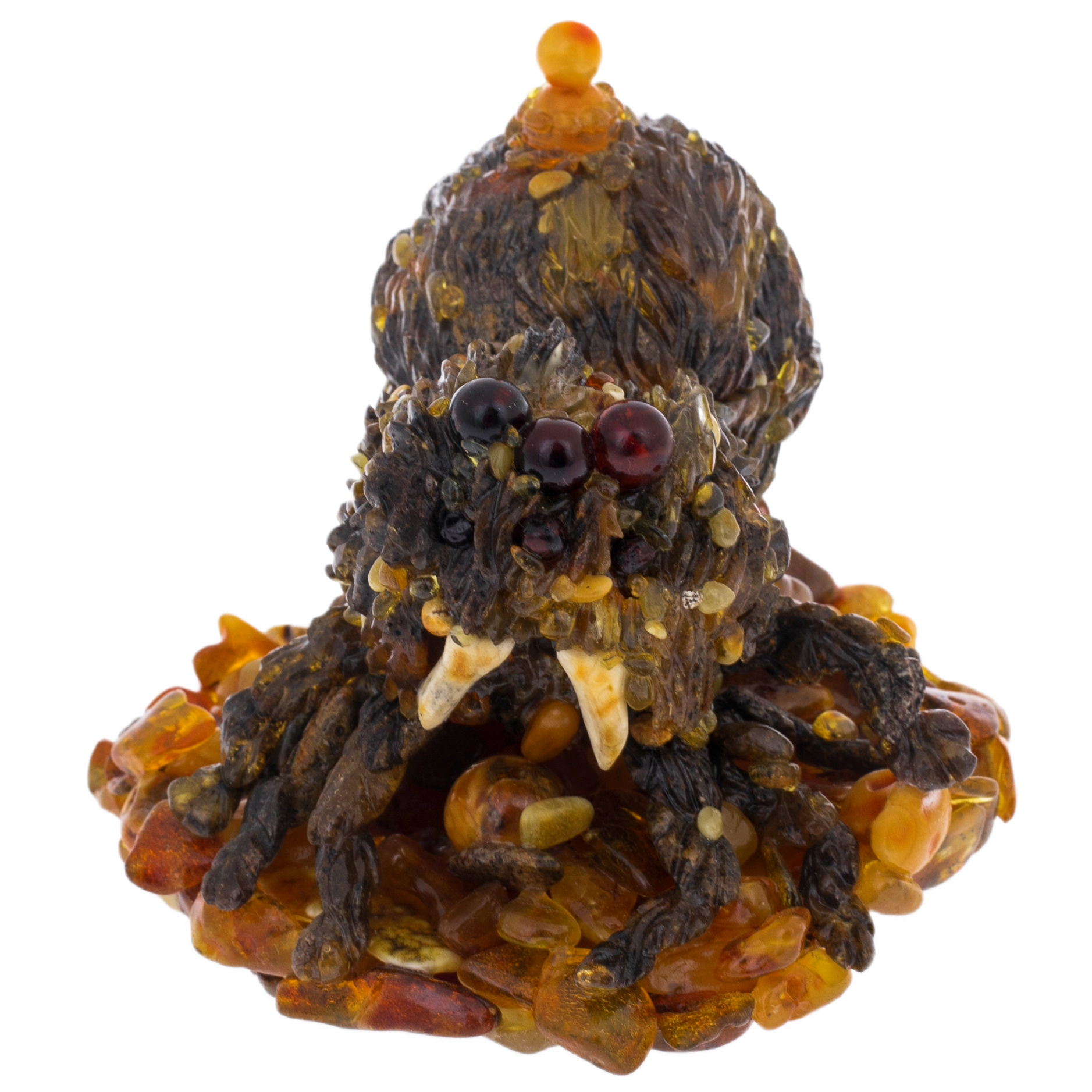The base, made of randomly arranged amber drops, imitates the natural landscape, emphasizing the organicity and naturalness of this work of art. It seems that the spider has just descended from its web, ready to protect its master's secrets.
