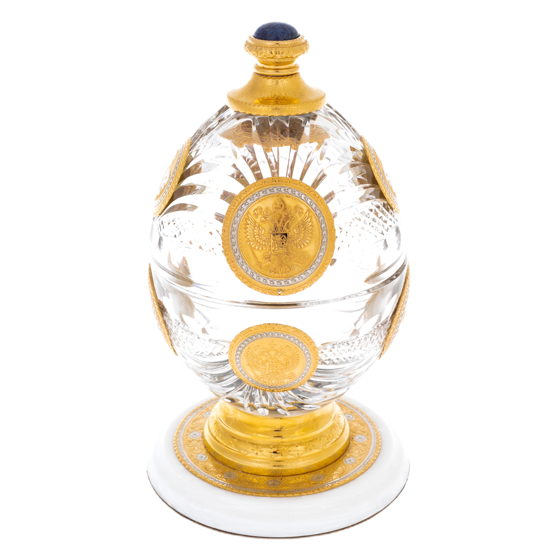 Easter Egg crystal box with lapis lazuli and amber, Zlatoust