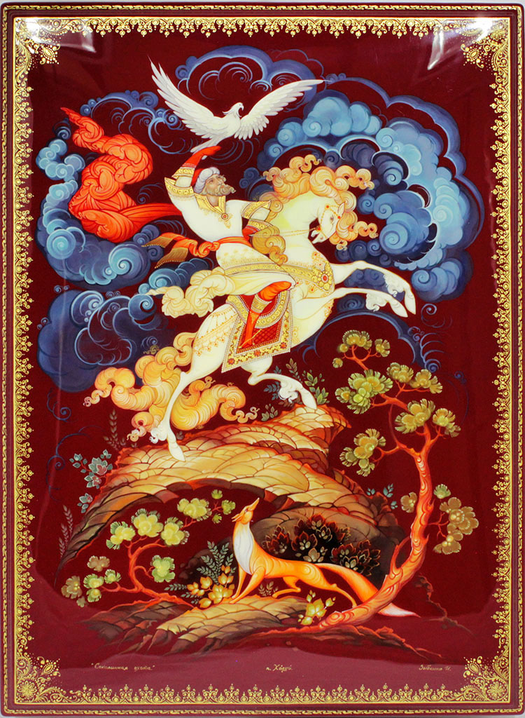Materials:papier-mache, tempera paints, gold leaf, linseed oil, varnish.
