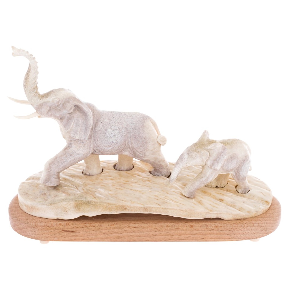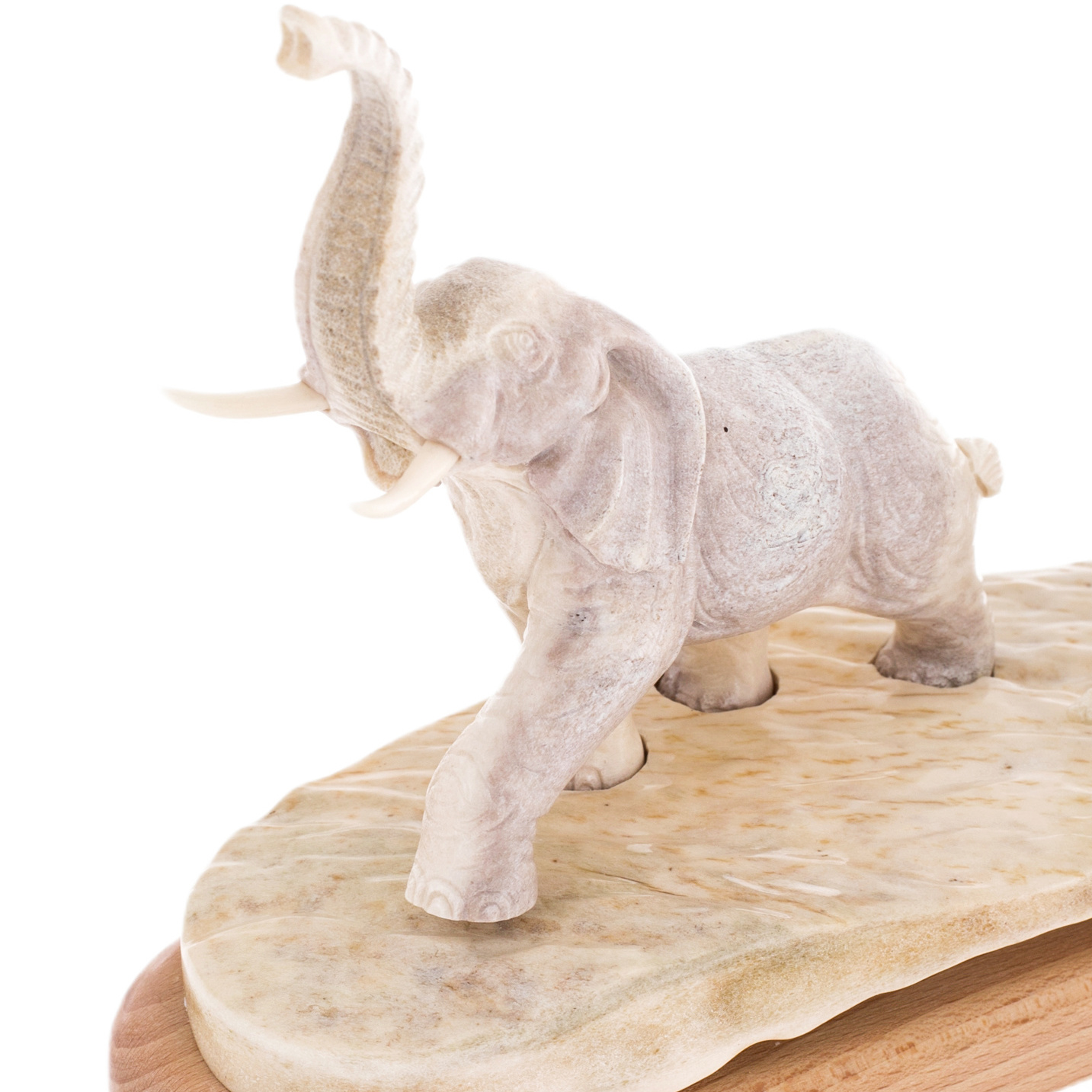 The elk horn used to create this composition is famous for its durability and noble texture. The natural lines and iridescences of the material emphasize the uniqueness of each detail, turning the sculpture into a living allegory. The elephants depicted, each of which has a unique expressiveness, embody strength and wisdom, a deep connection between generations and the persistence of traditions.