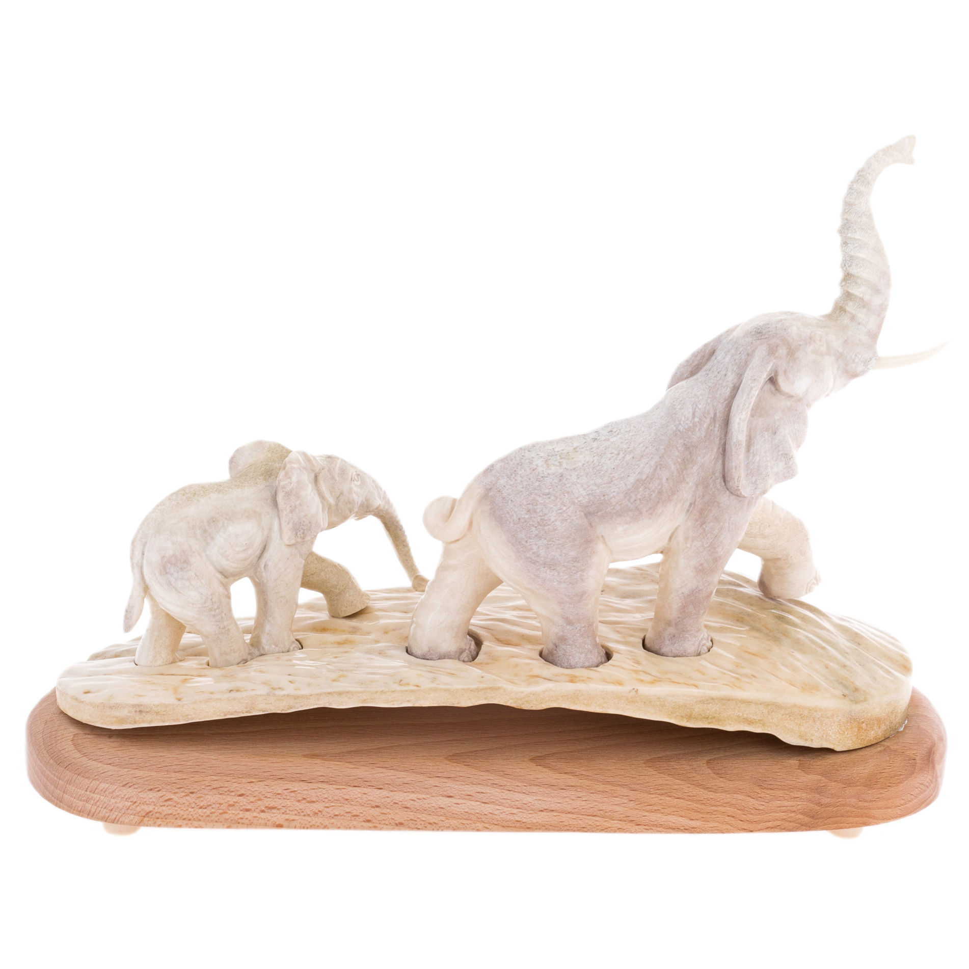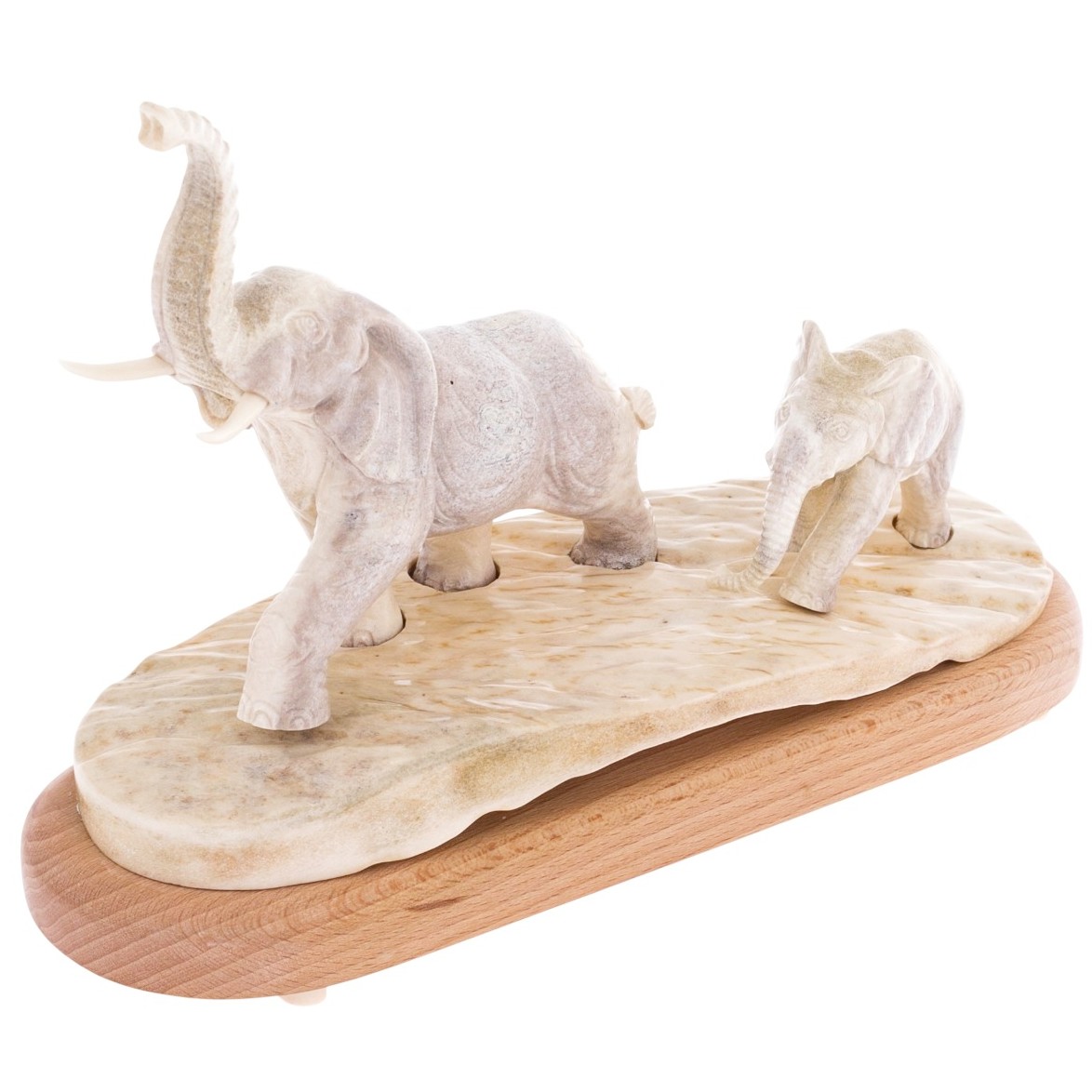 The sculpture "Elephants" made of moose horn on an elegant stand is the epitome of grace and power, a symbol of family ties and the eternal movement of life. This unique statuette combines the natural beauty of a rare material and the art of a craftsman who transformed it into an image imbued with deep meaning and aesthetics.