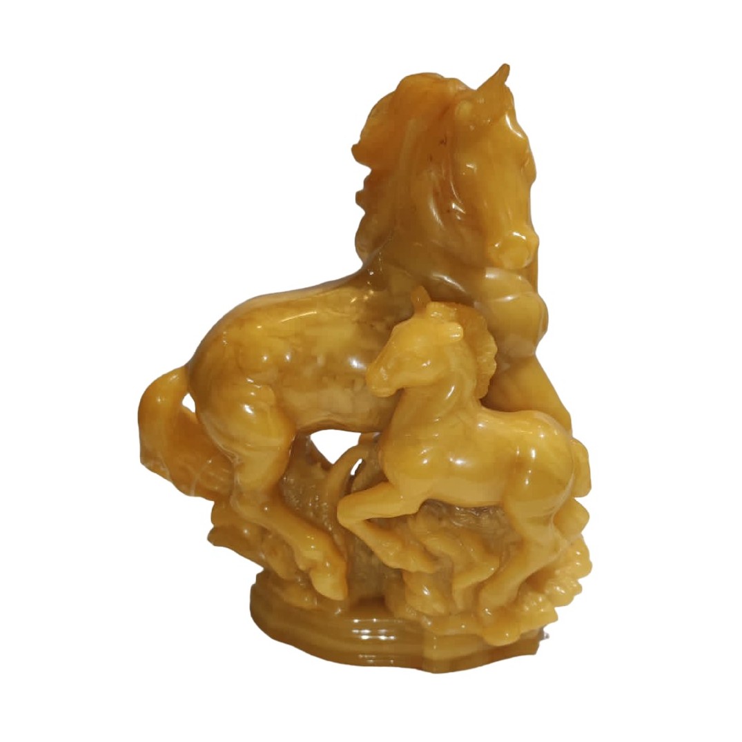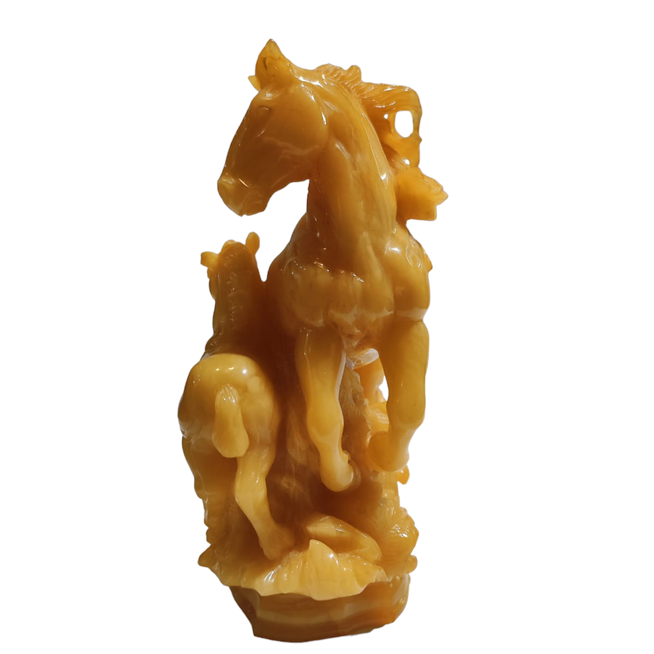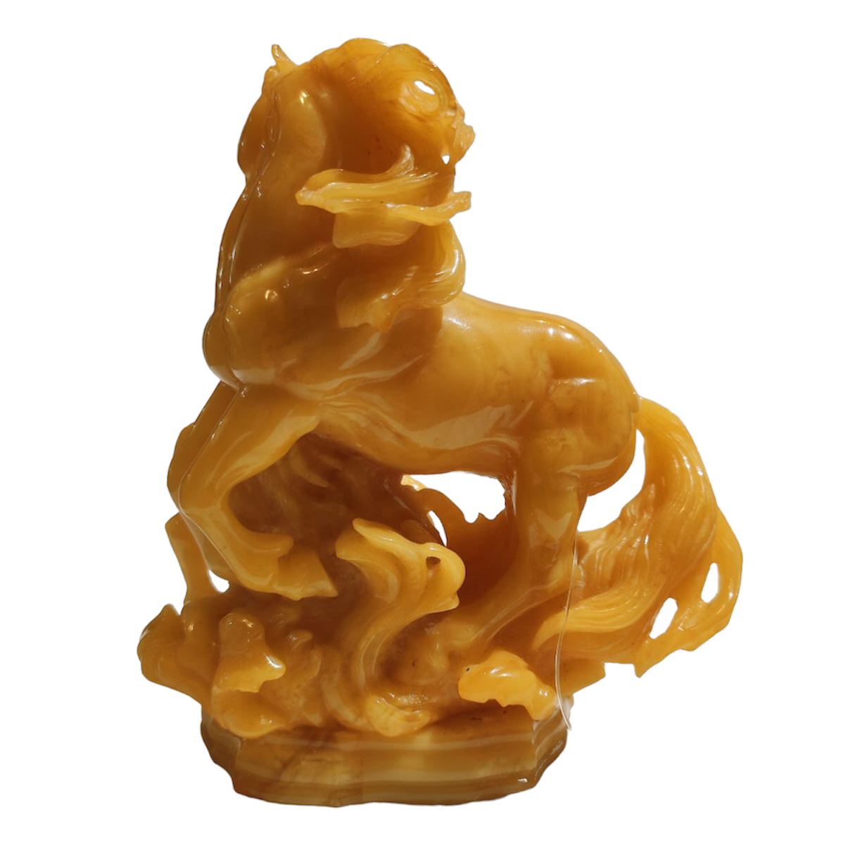 Two-sided carving of a horse with a foal, handmade from a single piece of natural milk amber of the first grade.