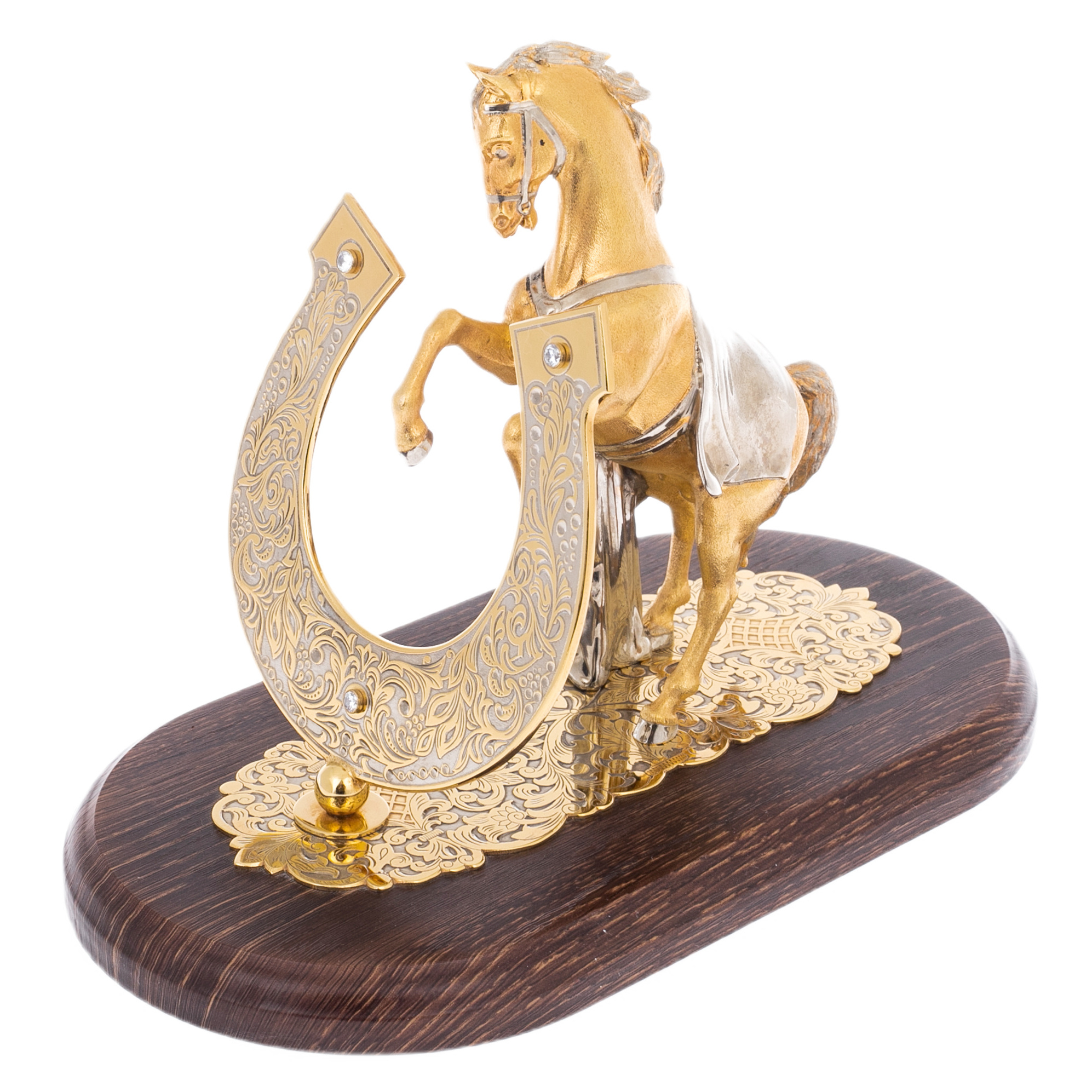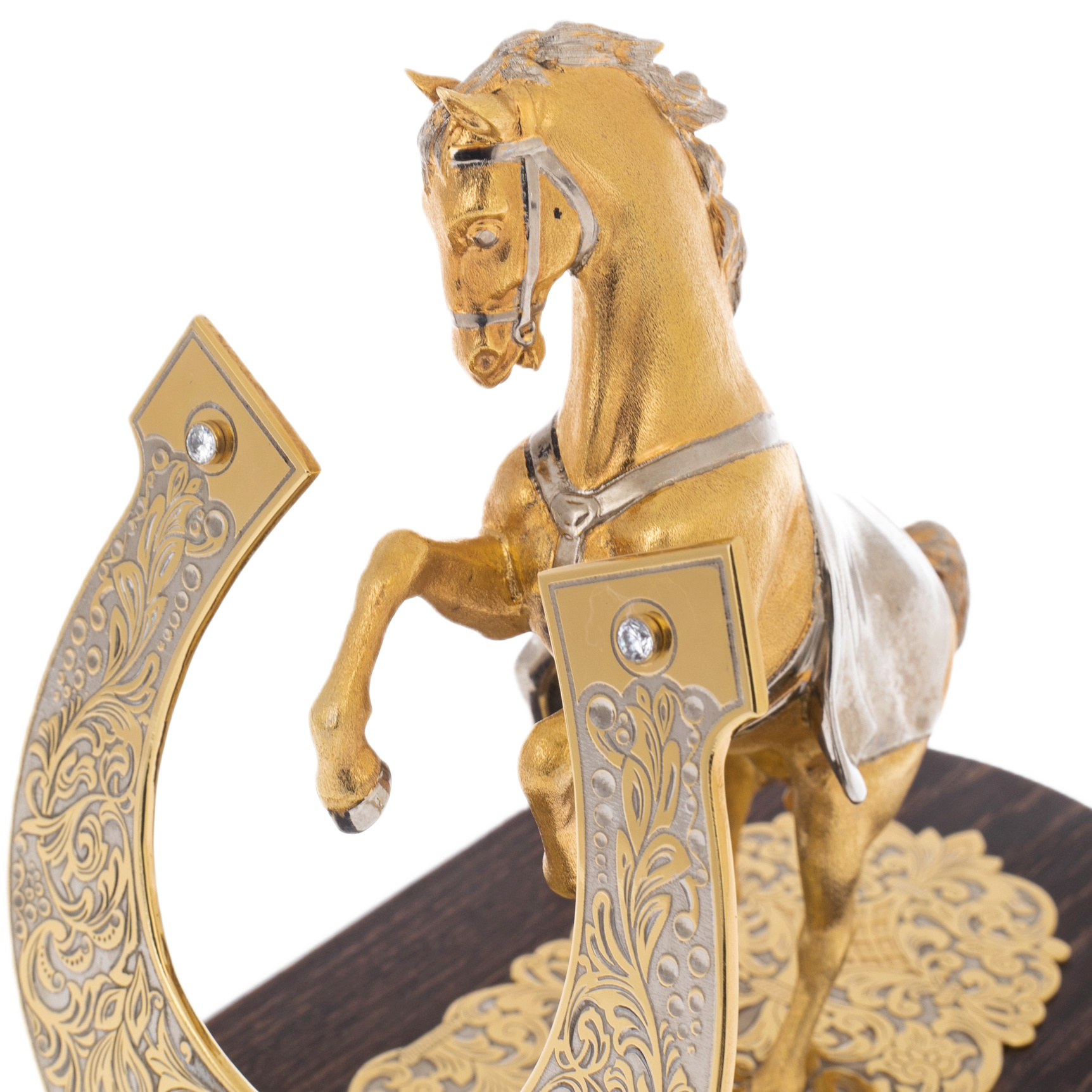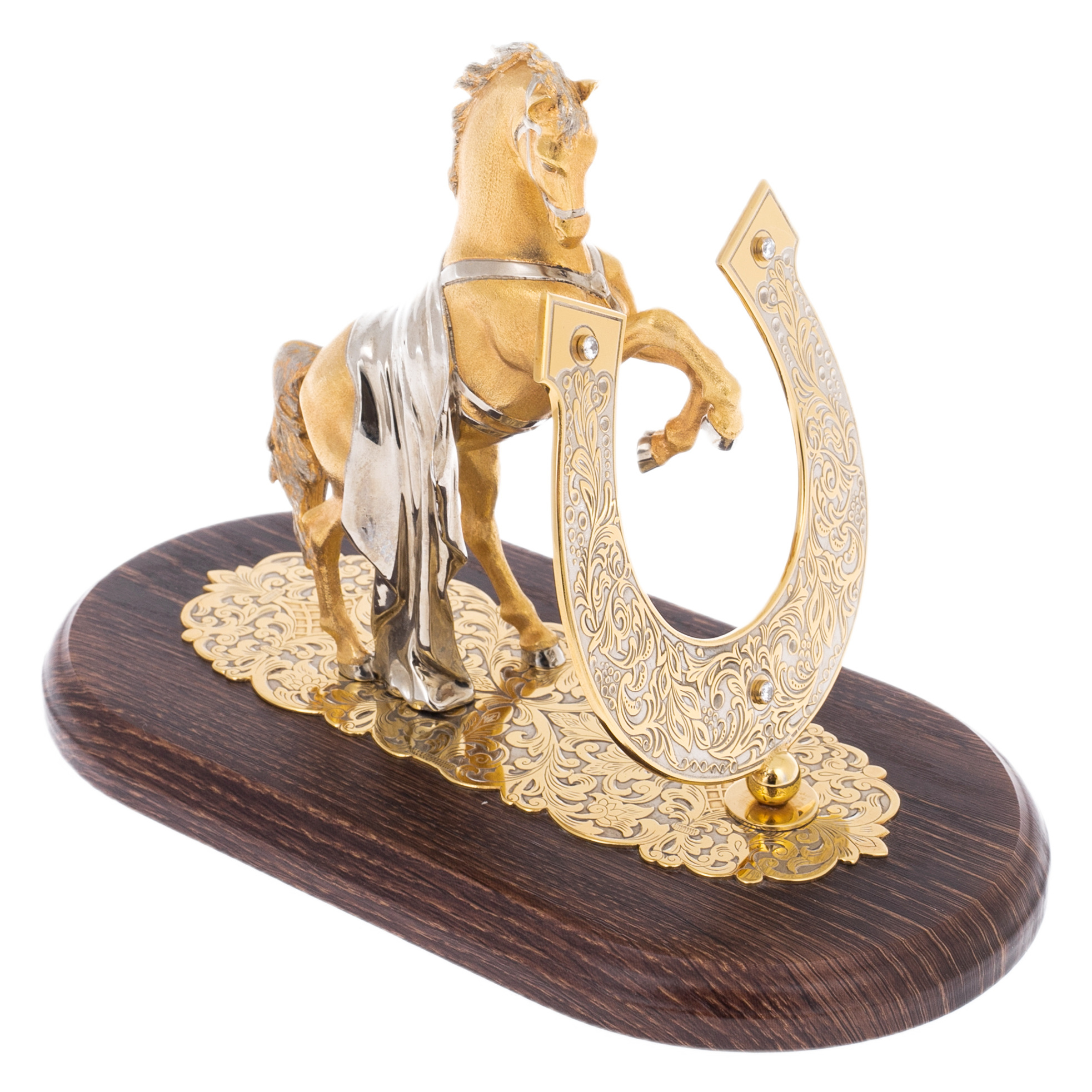 The horseshoe resembles a mysterious amulet that fulfills the wishes of those who are used to dictate the rules. The artful engraving on its surface is like an ancient symbol, applied by the hand of a master who knew that luck is given not to those who seek it, but to those who take it without hesitation. Interspersed with shining stones are like stars illuminating the way to new victories, and the graceful swirls of the ornament reflect refined taste and the desire for perfection.