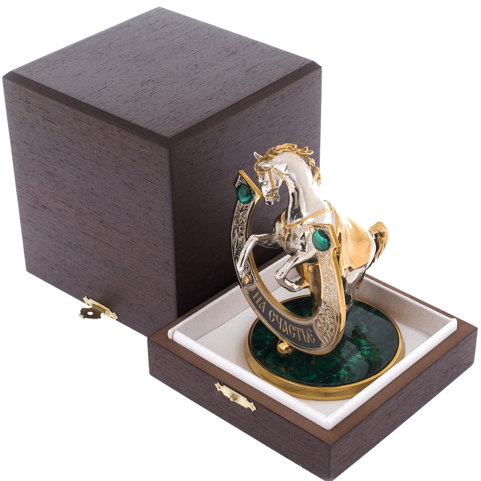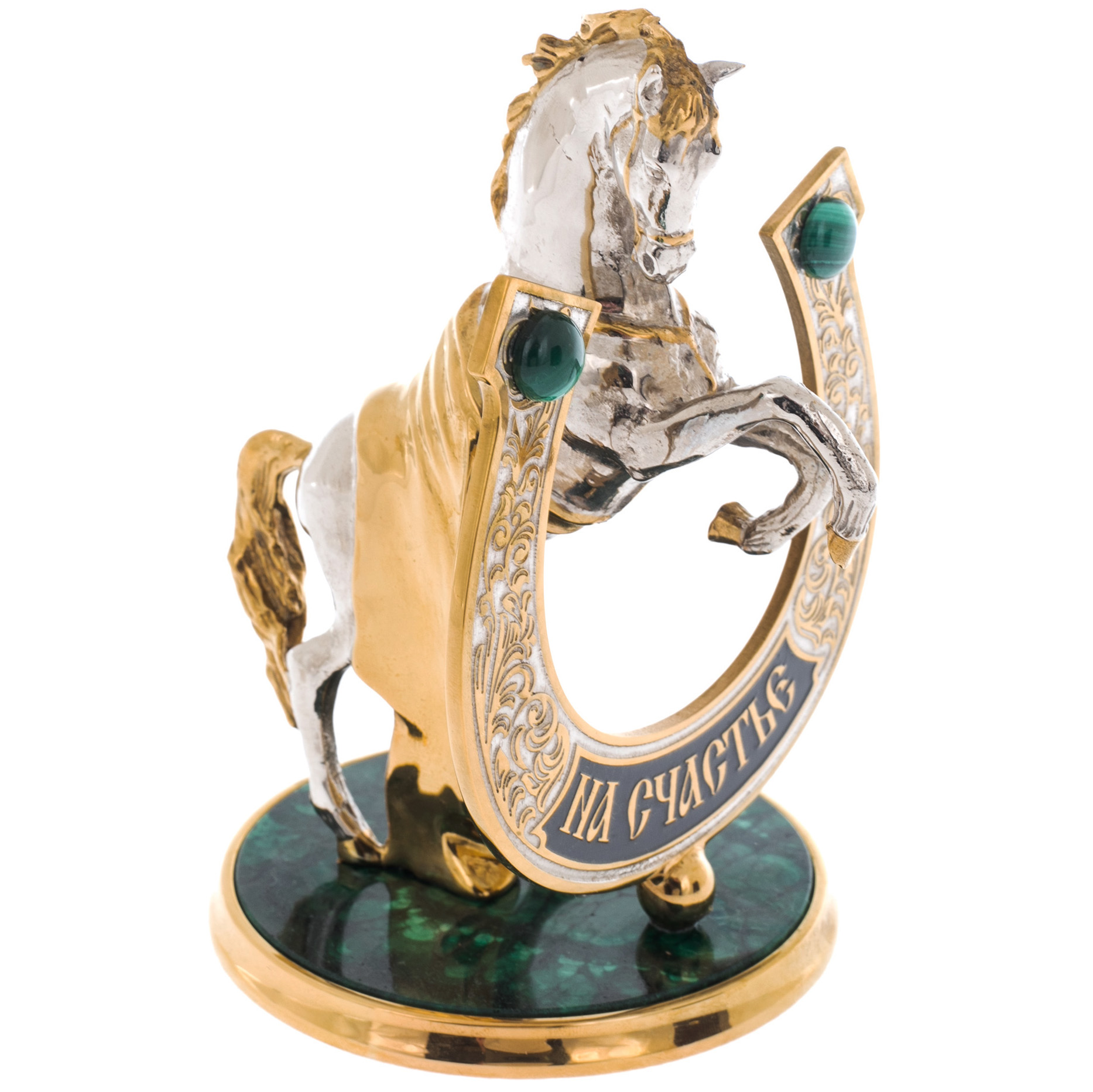 Statuette on malachite "Horse with a horseshoe. For luck" Zlatoust
