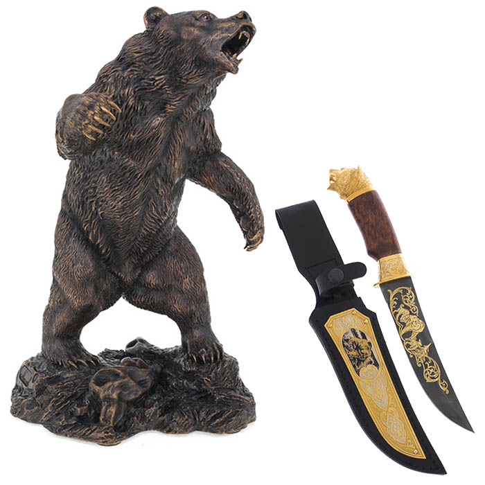 Gift set "Bear" with hunting knife and sculpture "Connecting rod Bear"
